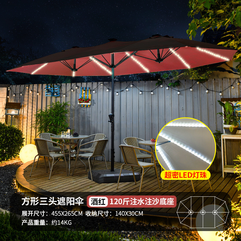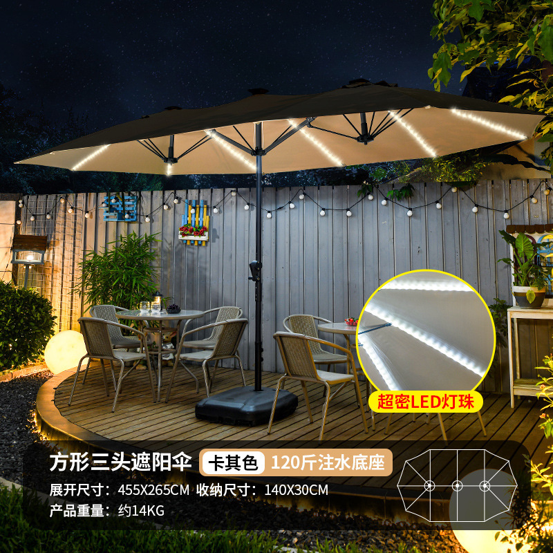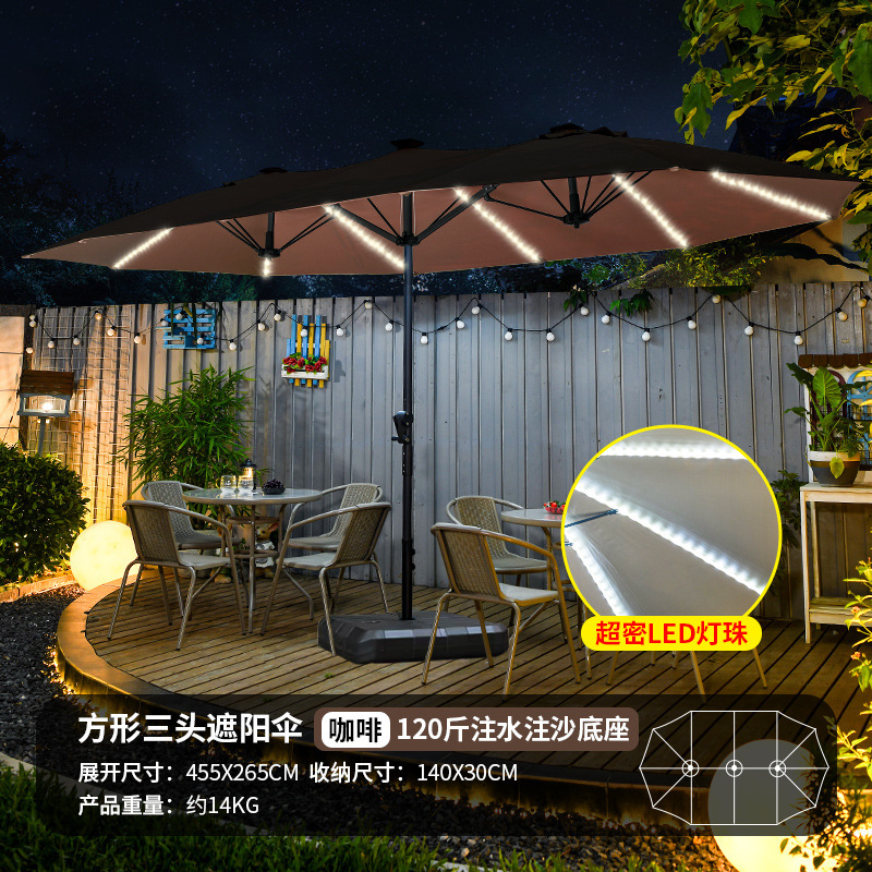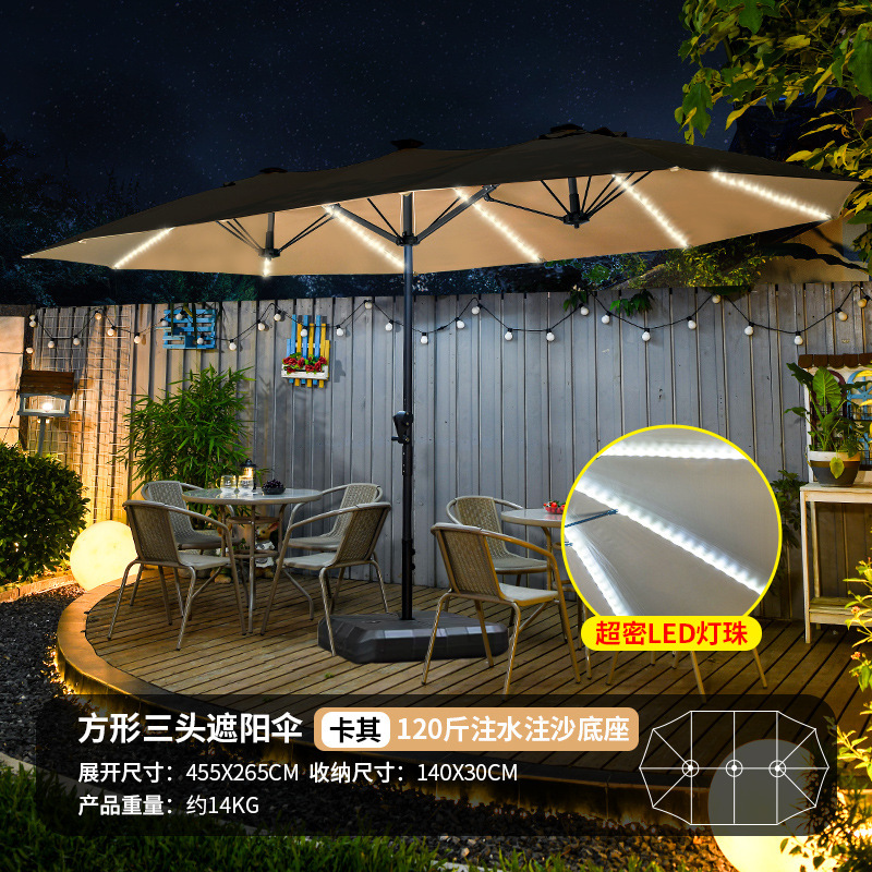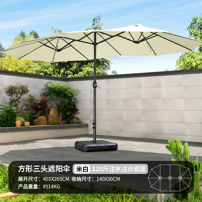 야외 3 머리 파라솔 코트야드 레저 shed Middle Column Umbrella Beach Canopy Sun Umbrella 야외 정원 상업 캠핑 우산스토어 가기