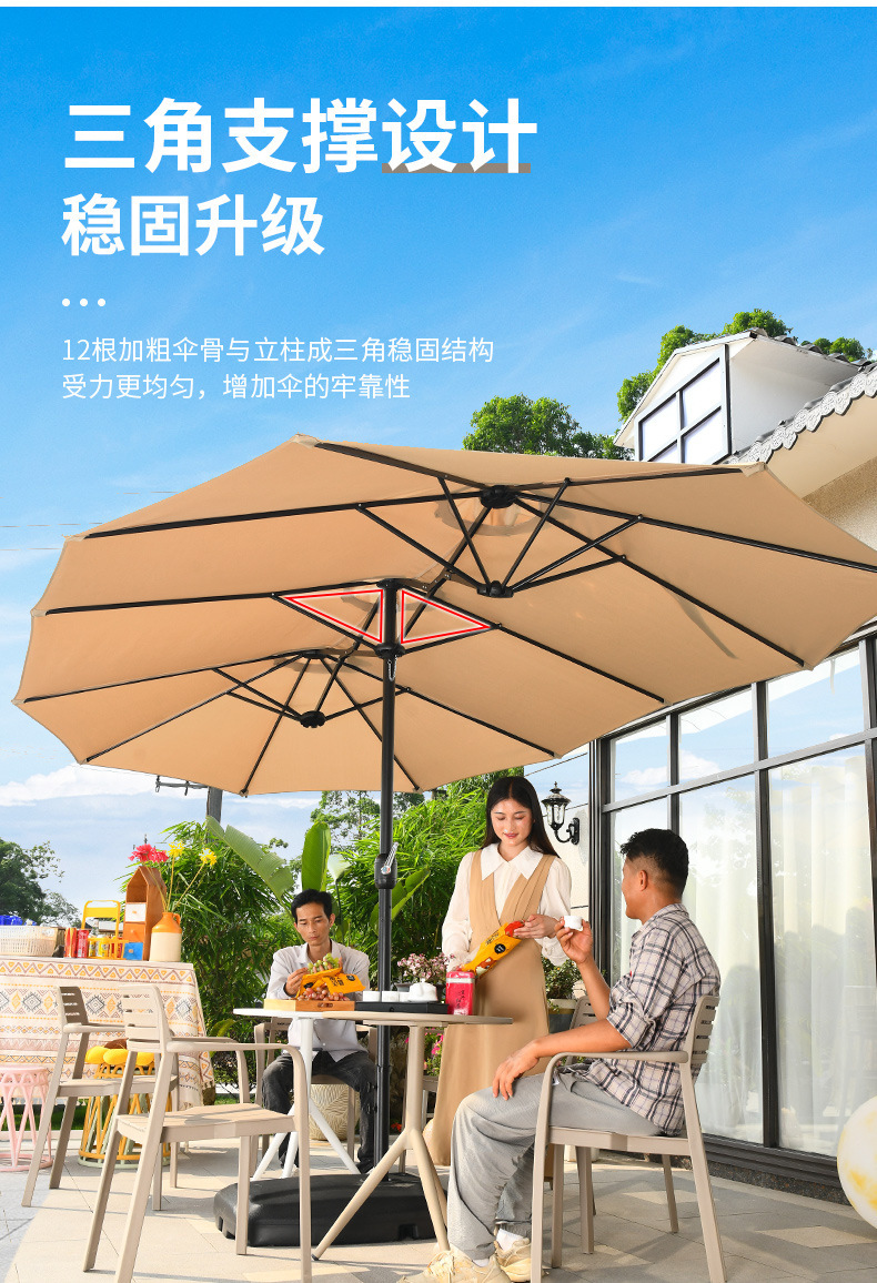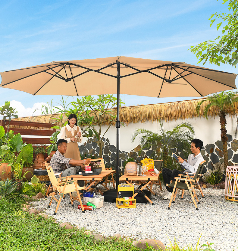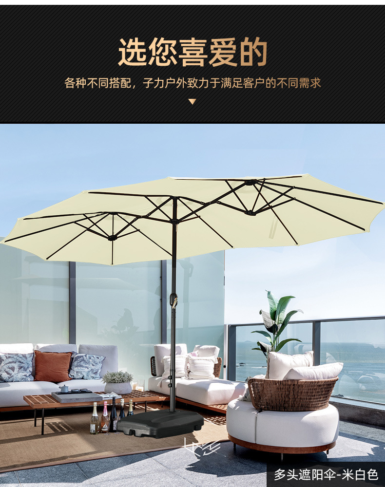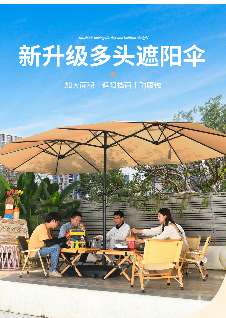 야외 3 머리 파라솔 코트야드 레저 shed Middle Column Umbrella Beach Canopy Sun Umbrella 야외 정원 상업 캠핑 우산스토어 가기