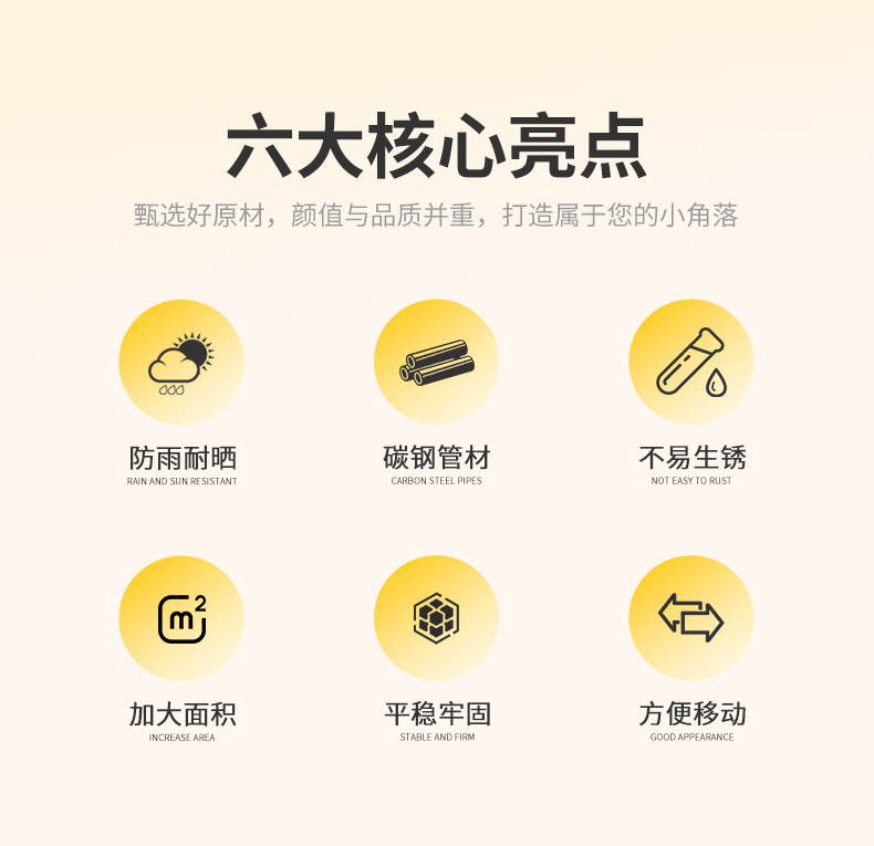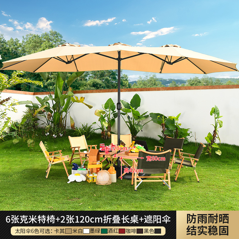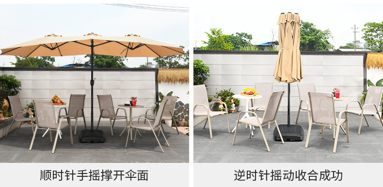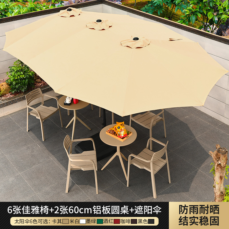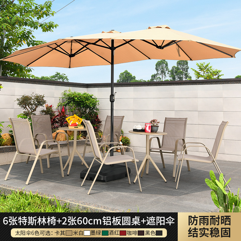 • 테이블, 의자, 우산 조합: Jiaya 의자 6개 + 60cm 알루미늄 판 원형 테이블 2개, 물 주입 베이스 80kg 개