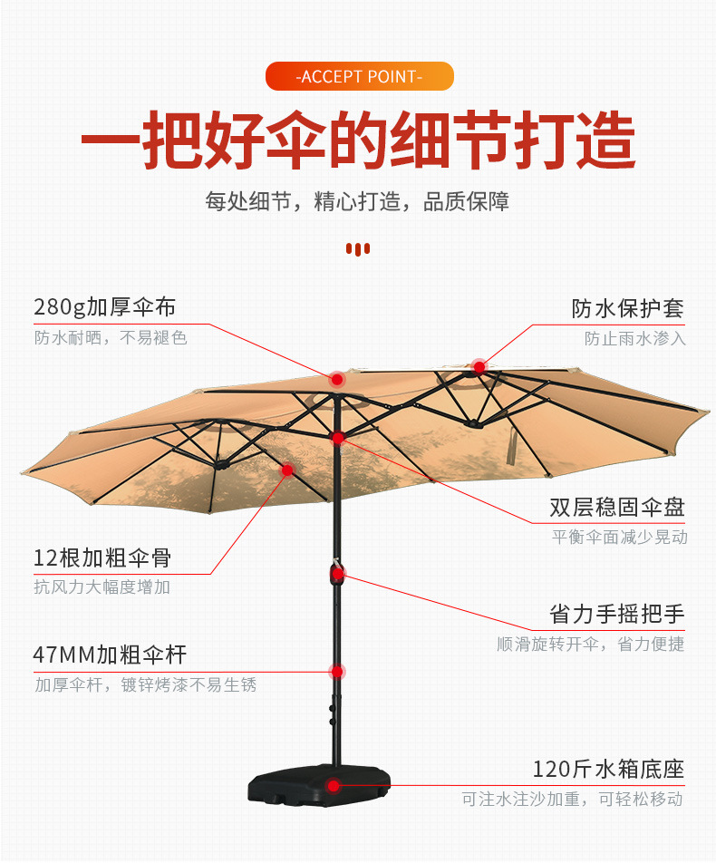 • 태양광 램프 비드 모델: 카키 4.5_ 2.6m 60kg 물 주입 모래 주입 베이스 포함