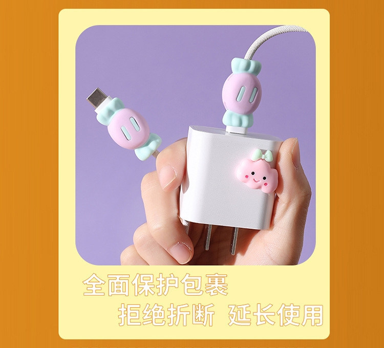 휴대 전화 데이터 케이블 보호 슬리브 실리콘 만화 2 대 1 보호 와이어 골절 방지 충전 코드 보호 슬리브스토어 가기