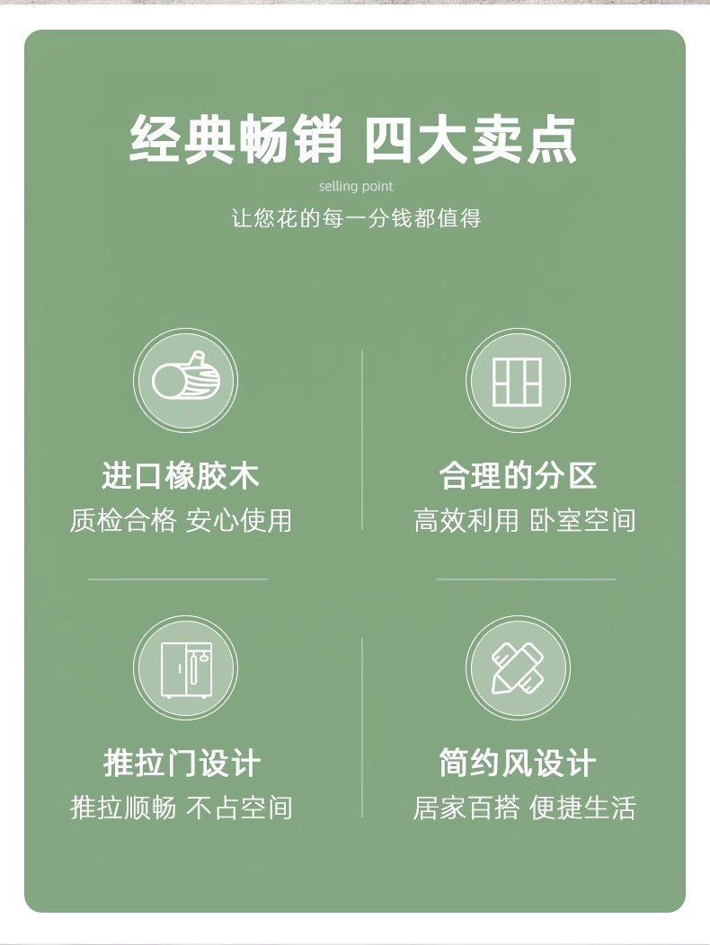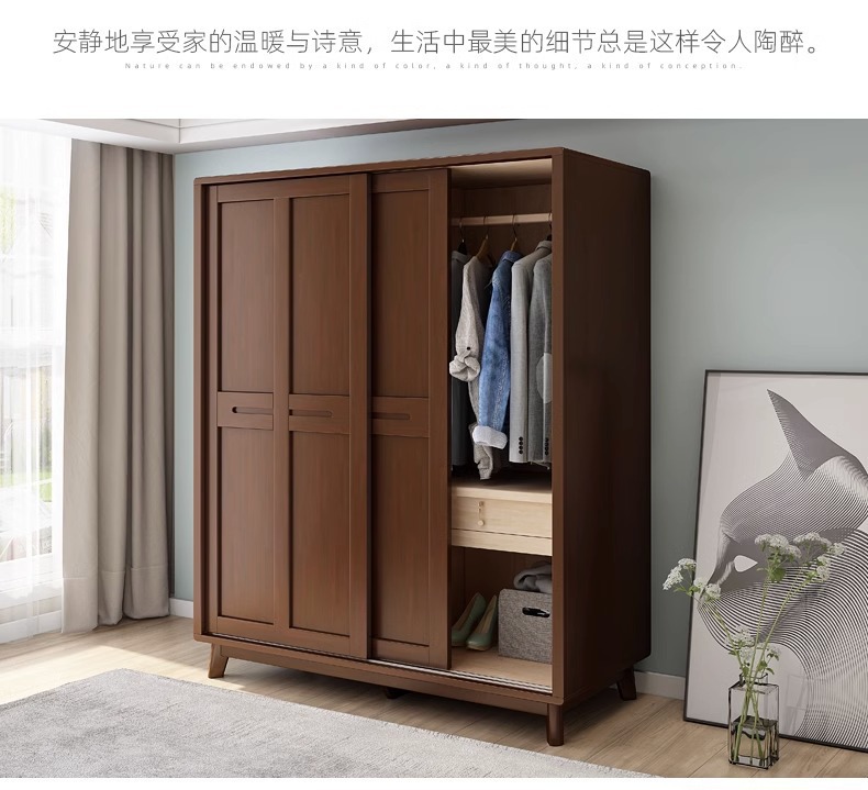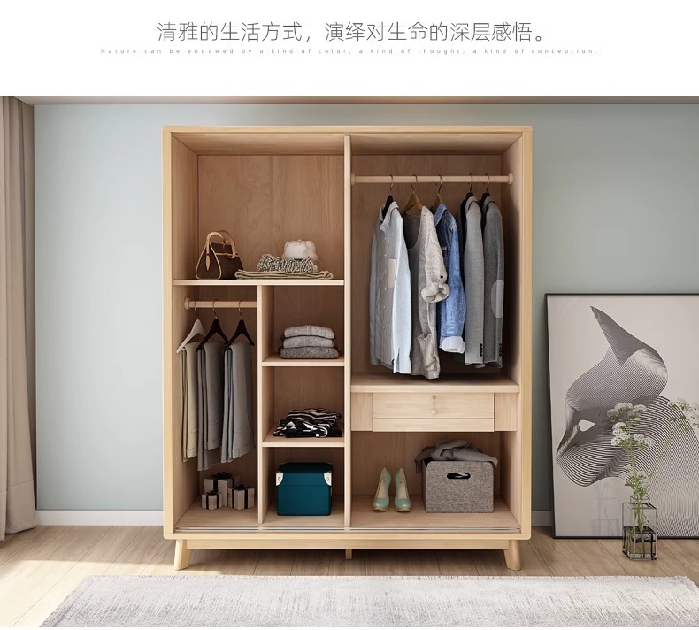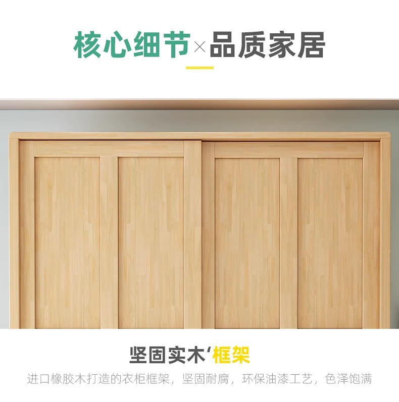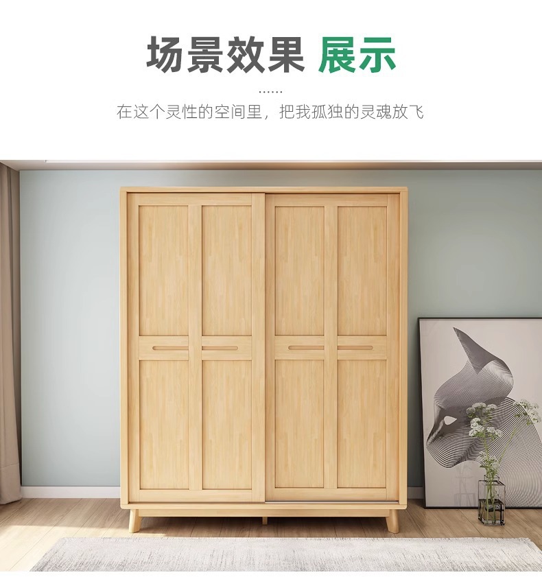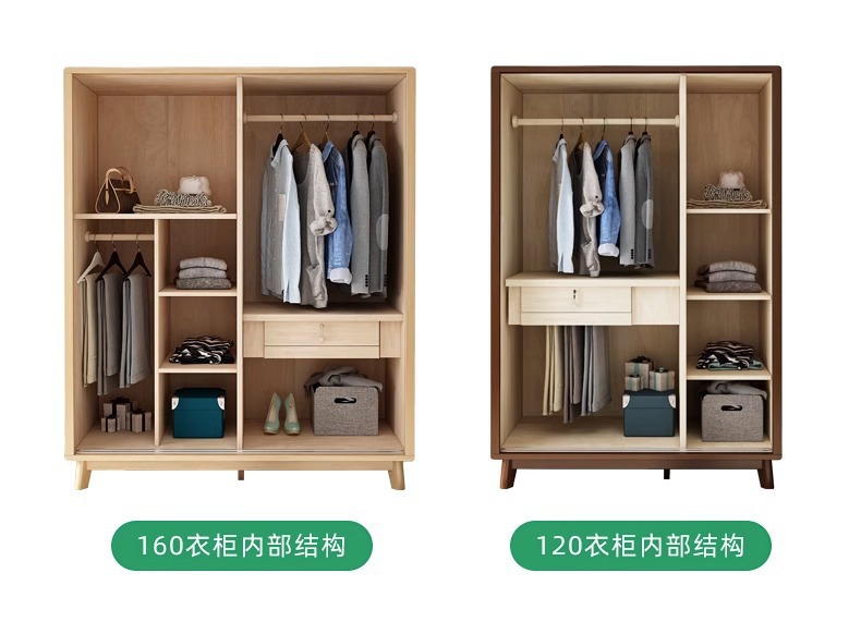 북유럽 솔리드 우드 옷장 작은 아파트 2 도어 현대 간단한 옷장 침실 색상 분리 더블 슬라이딩 도어 보관 옷장스토어 가기