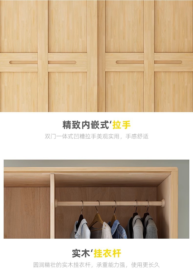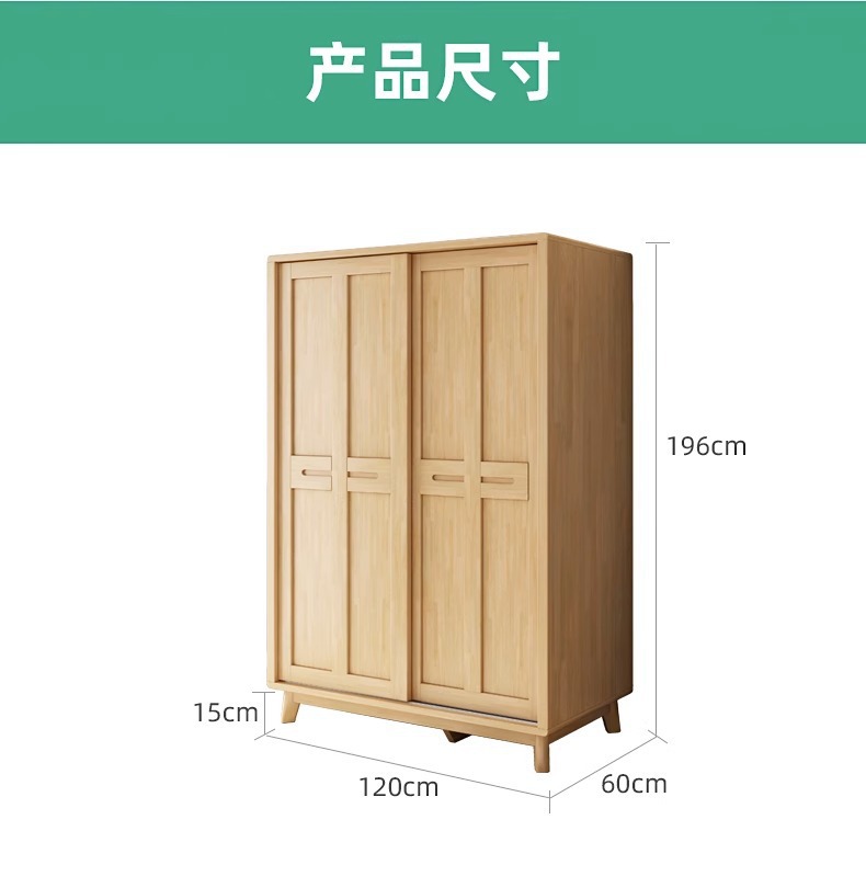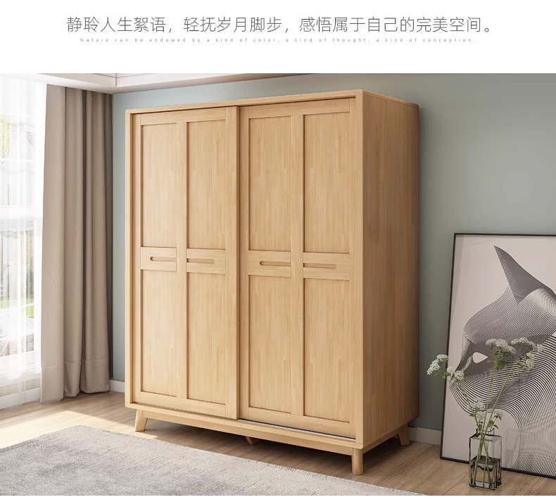 북유럽 솔리드 우드 옷장 작은 아파트 2 도어 현대 간단한 옷장 침실 색상 분리 더블 슬라이딩 도어 보관 옷장
