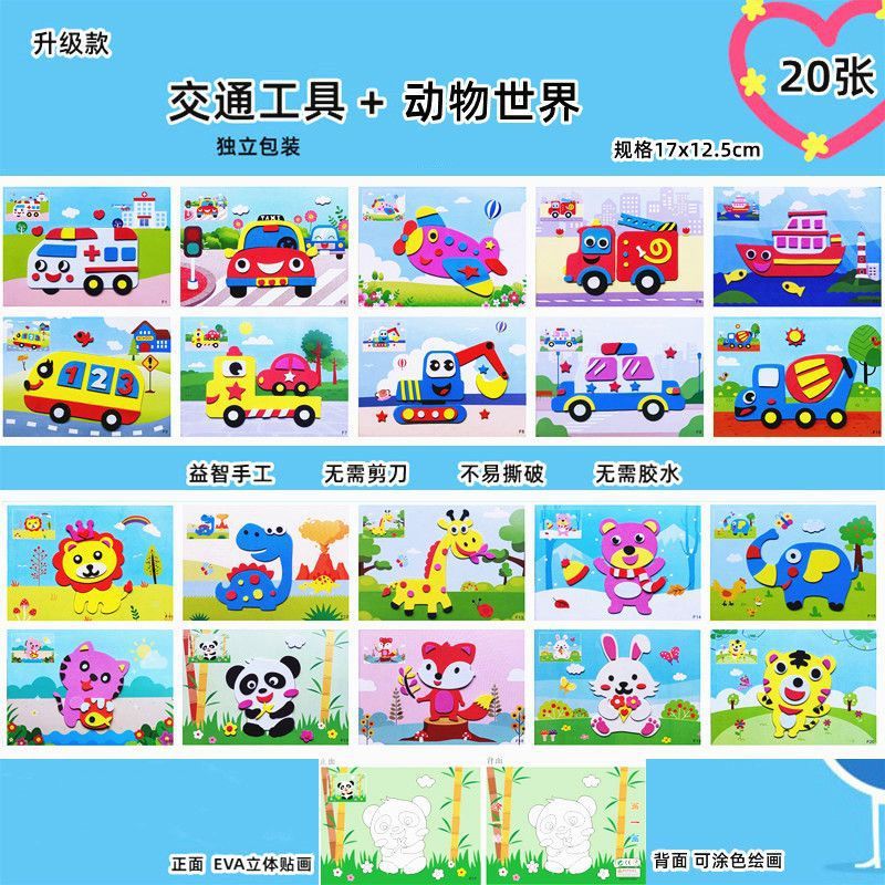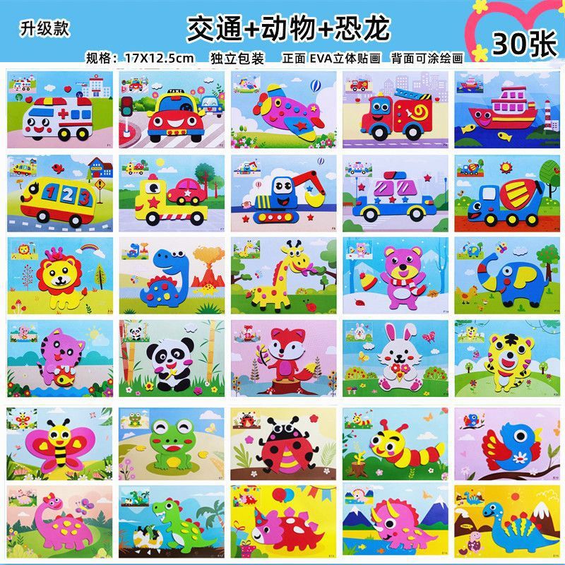 스테레오 EVA 스티커 유치원 스티커 어린이 수제 DIY 만들기 소재 장난감 공룡 자동차