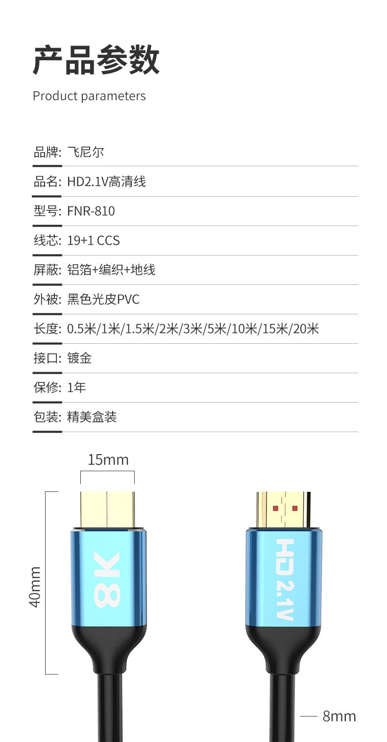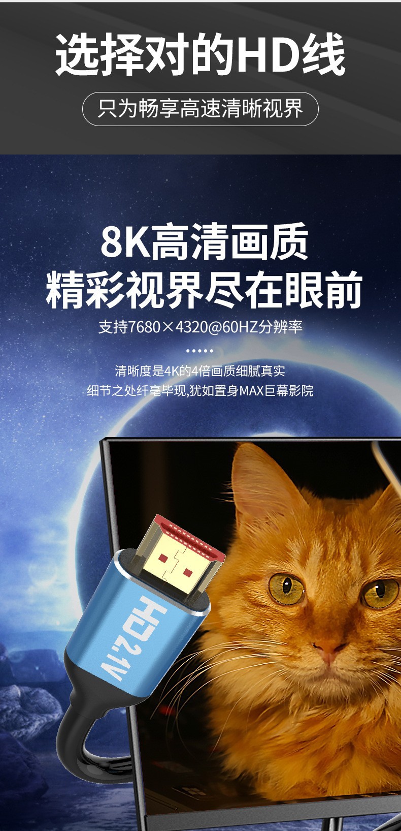 • Feiniel 8K *HDMI 케이블 블루 헤드