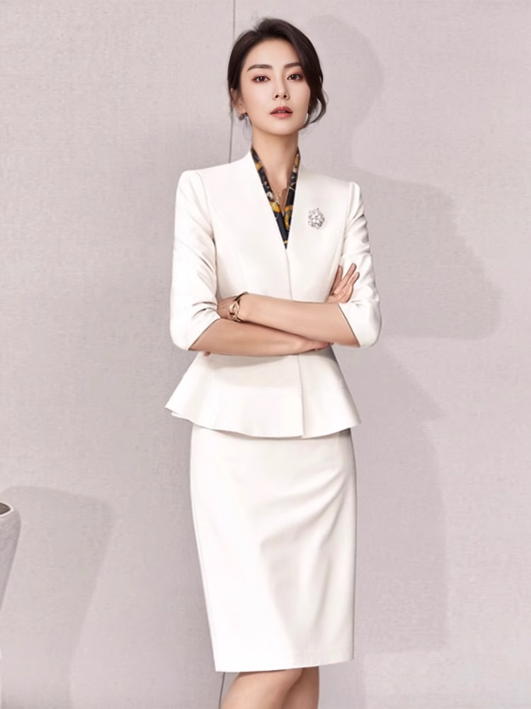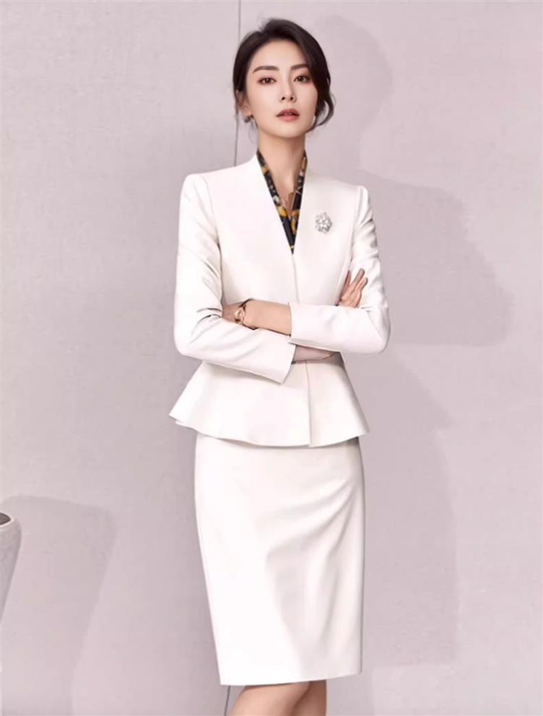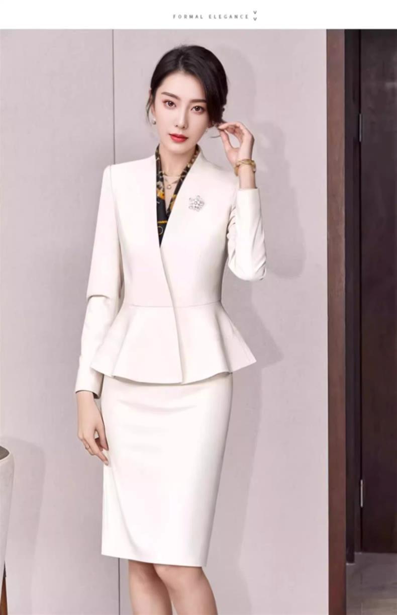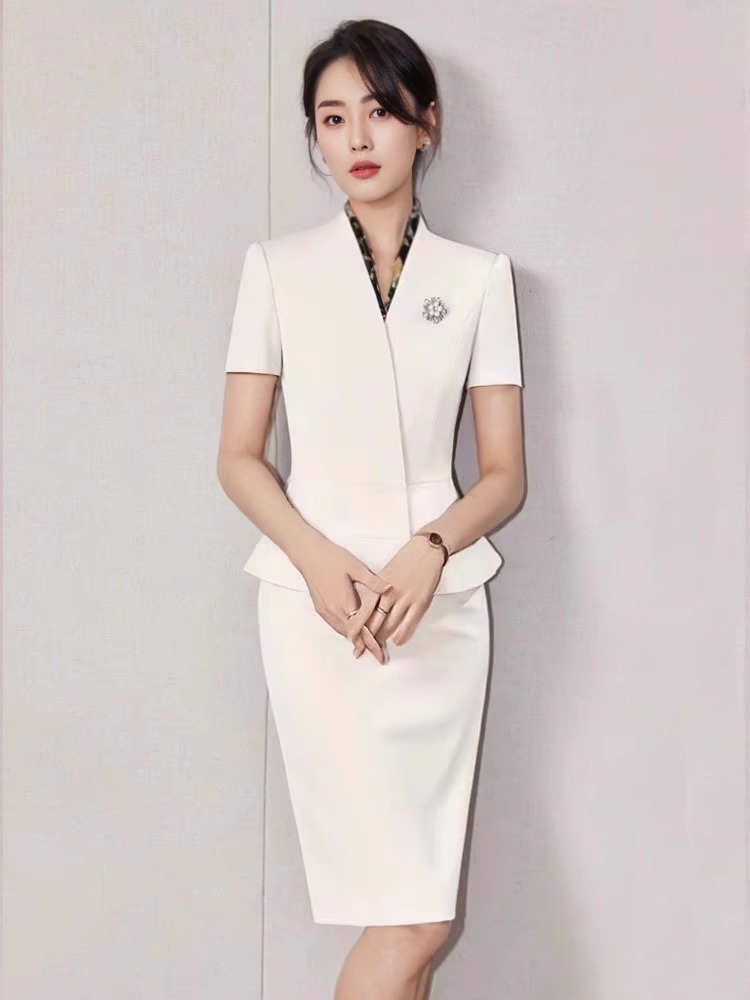 살구색 세트 세트 여성 사례 현장 고객 서비스 툴링 뷰티 살롱 오버롤 프론트 데스크 리셉션 세트 전문 원피스 봄스토어 가기