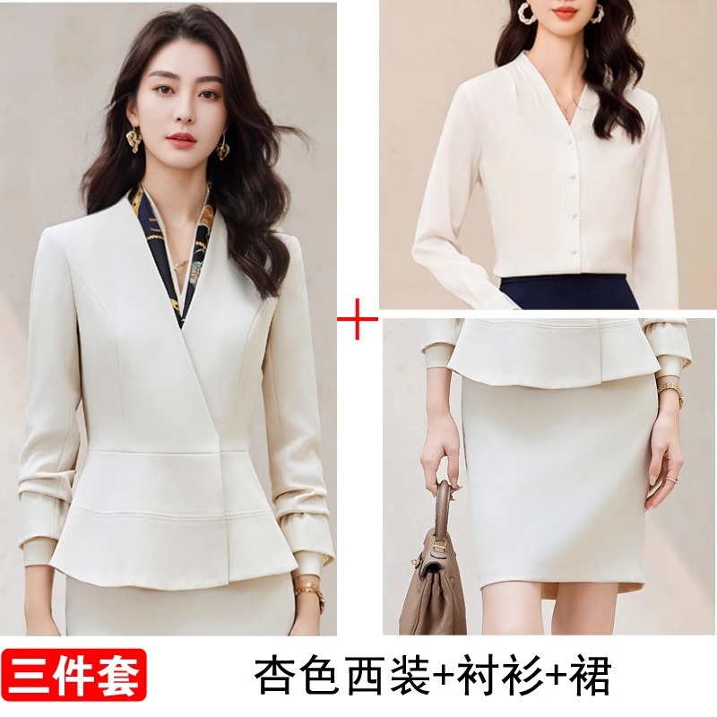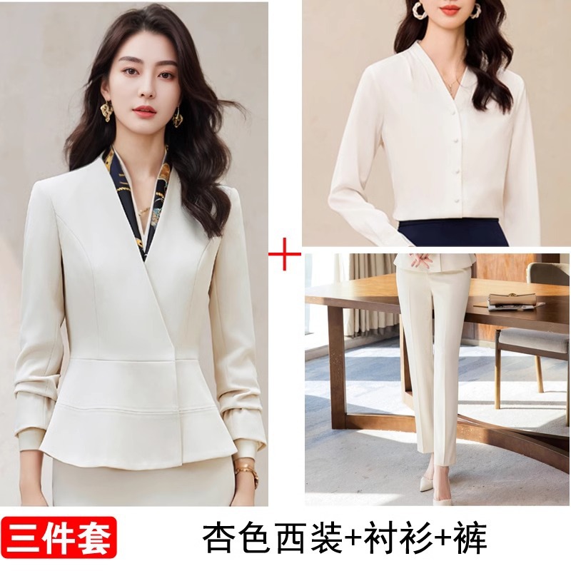 살구색 세트 세트 여성 사례 현장 고객 서비스 툴링 뷰티 살롱 오버롤 프론트 데스크 리셉션 세트 전문 원피스 봄