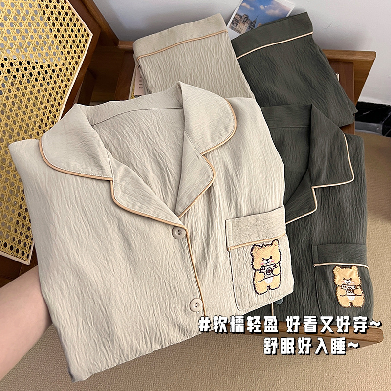 커플 잠옷 여성의 봄과 가을 구름 면 긴 소매 얇은 2025 새로운 간단한 만화 남성 홈 의류 세트스토어 가기