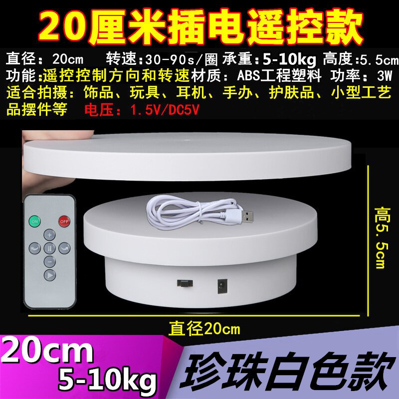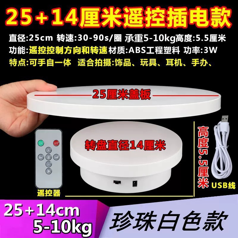• [플러그인 리모콘] 25cm 흰색 30-90초 원형 베어링 5-10KG 배경 보드 포함