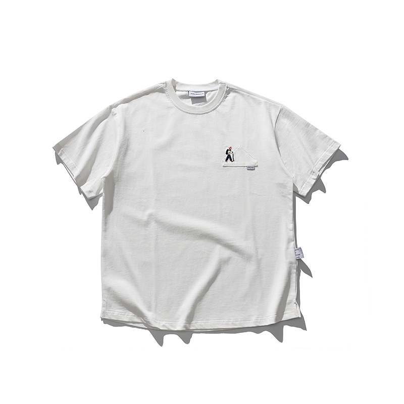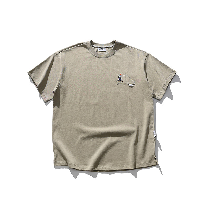 유행 2025 여름 일본 레트로 산악인 자수 반팔 티셔츠 유행 청소년 느슨한 소년 티셔츠
