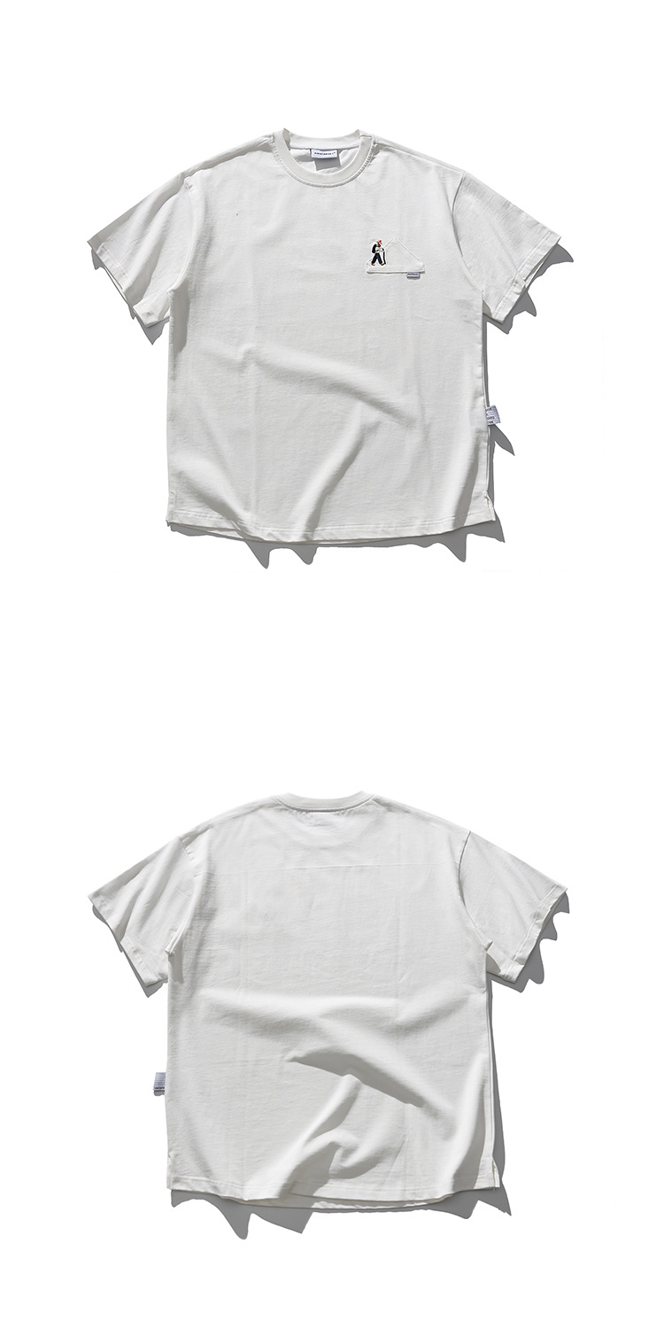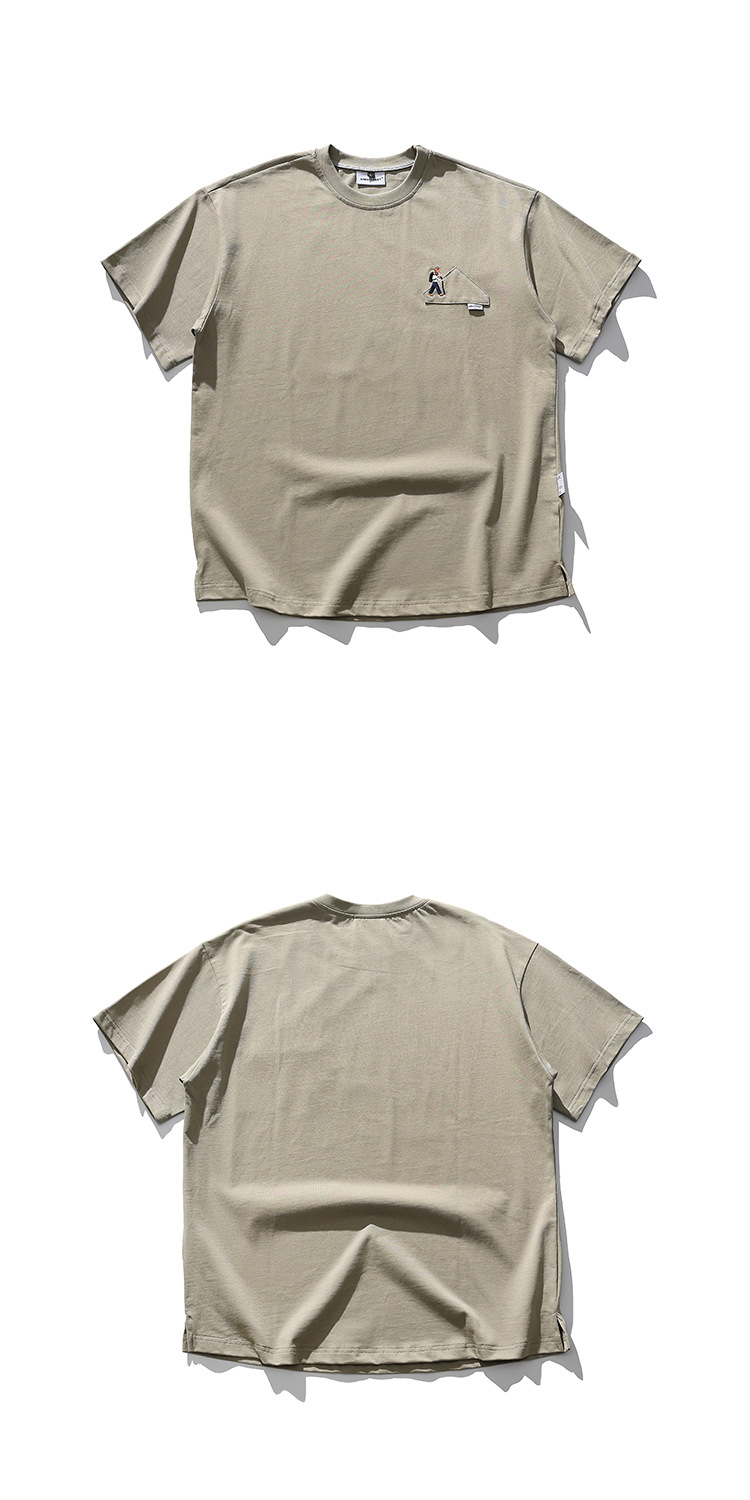 유행 2025 여름 일본 레트로 산악인 자수 반팔 티셔츠 유행 청소년 느슨한 소년 티셔츠스토어 가기