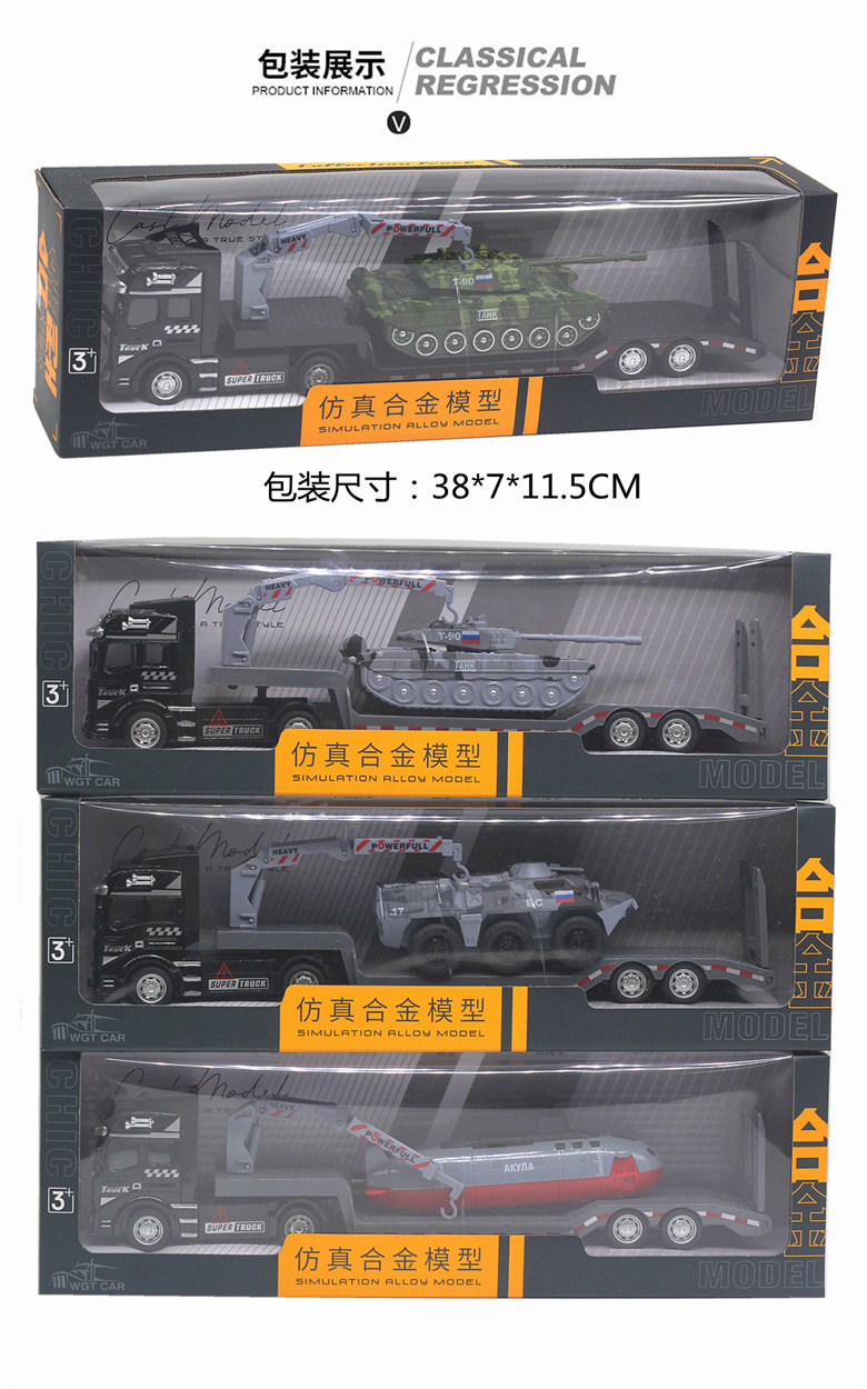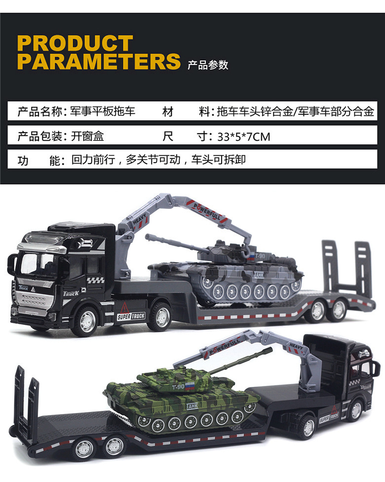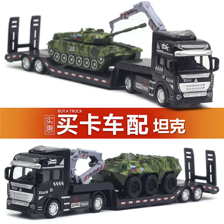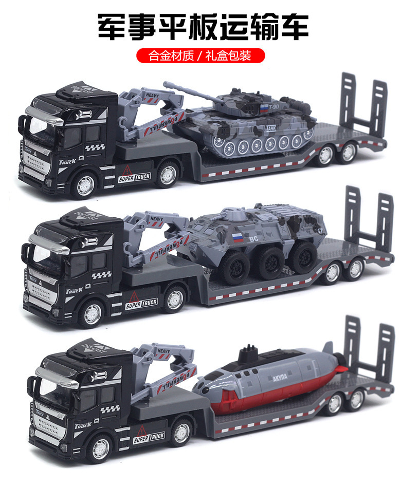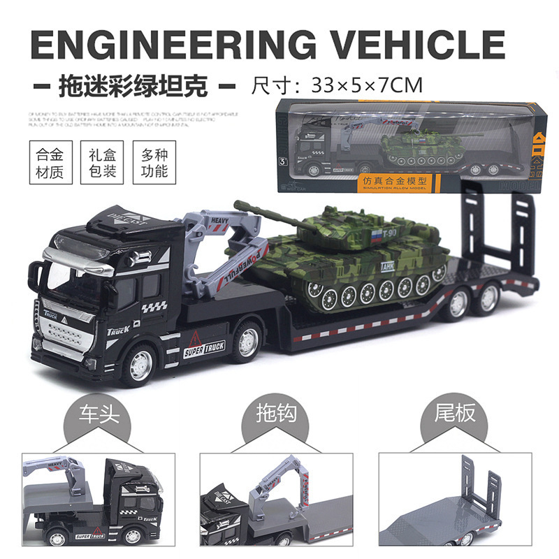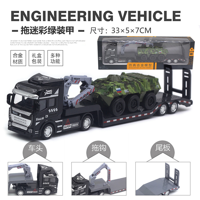 수송 트레일러 아이들 군사 탱크 장갑차 장난감 자동차 시뮬레이션 플랫 베드 트레일러 소년 모델스토어 가기
