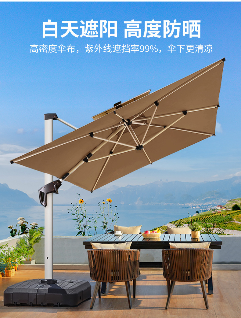 대형 빌라 태양 우산 테라스 코트 야드 햇살 우산 야외 정원 우산 센티널 부스 LED 발코니 가벼운 야외 로마