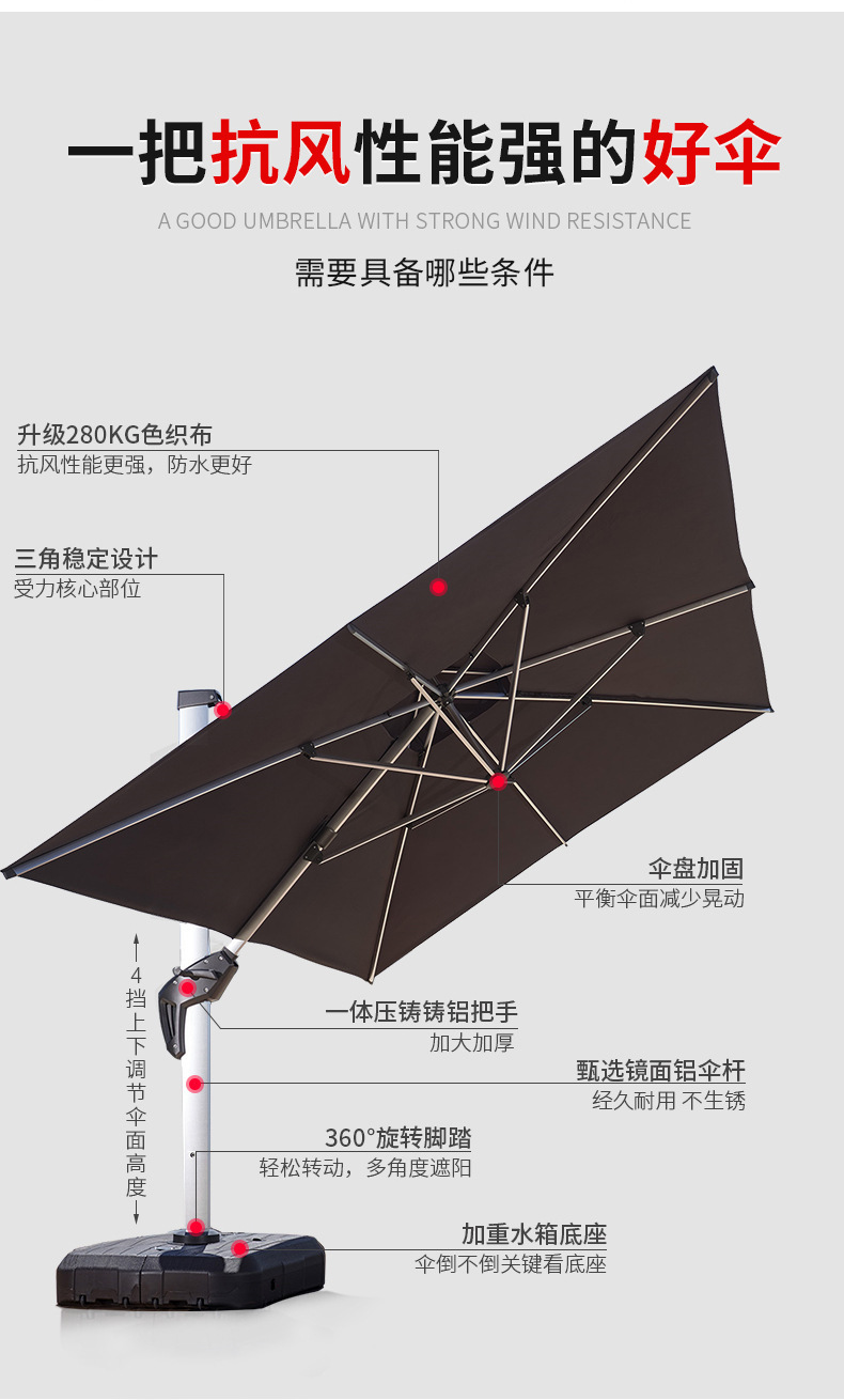 • 10cm 기둥 정사각형 3.5* 3.5m 우산, 물탱크 210kg 포함