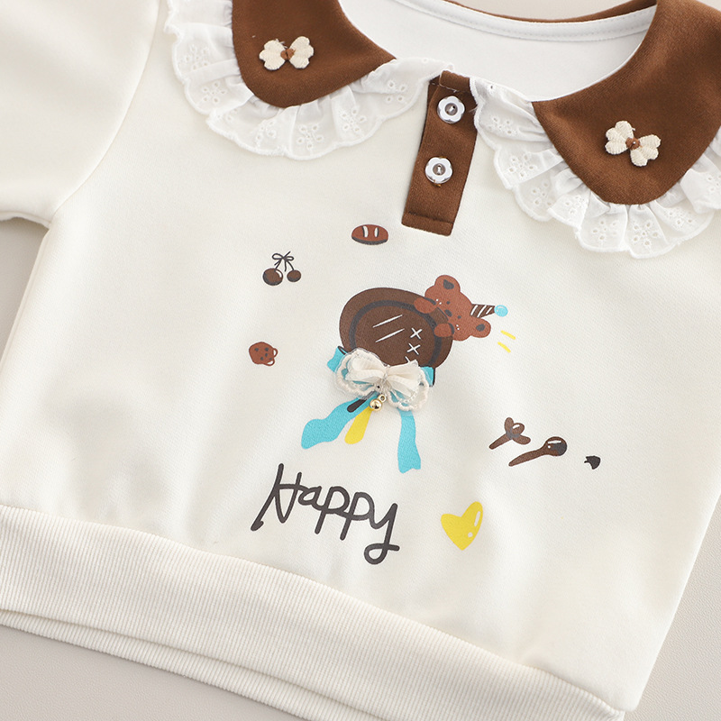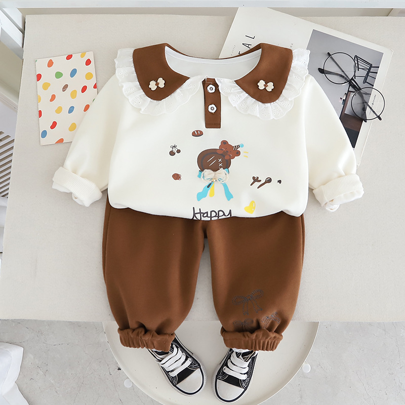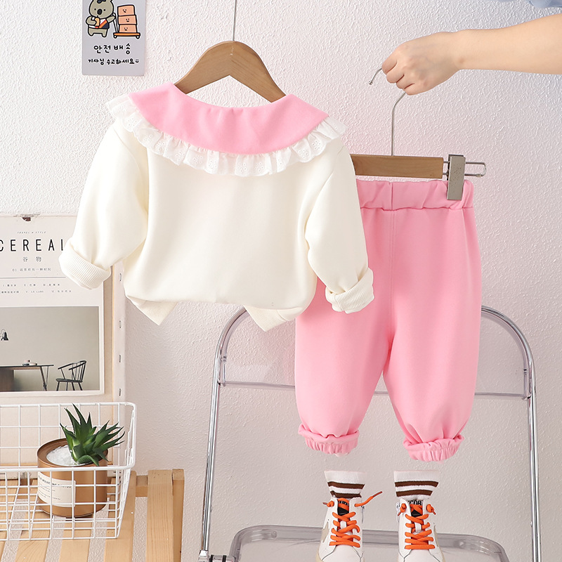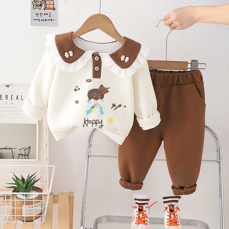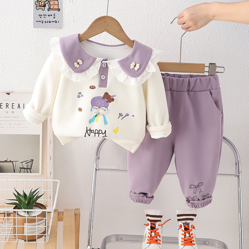 Yihao 아동 의류 소녀 정장 2025 새로운 어린이 운동복 귀여운 아기 소녀 봄, 가을 옷깃 캐주얼 투피스 세트