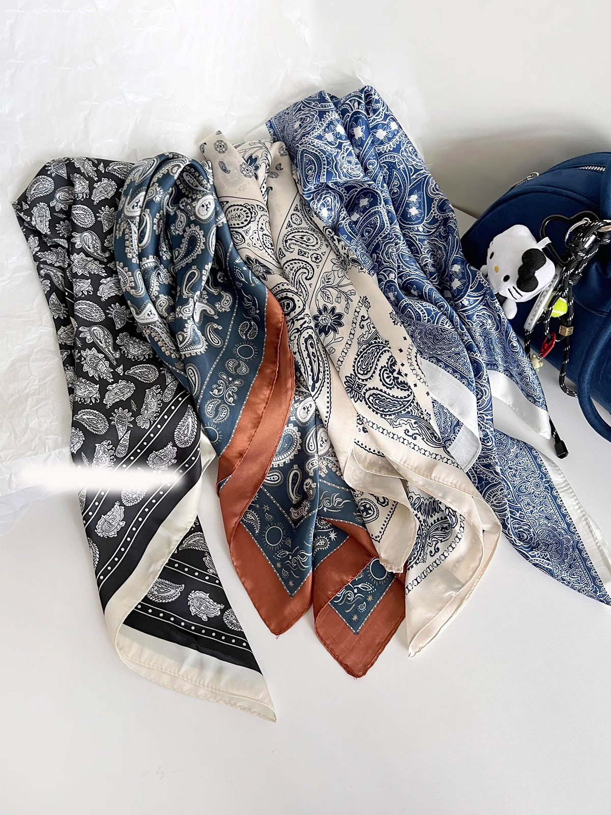 작은 광장 스카프 봄 새로운 빈티지 유행 토템 실크 스카프 여자 올 매치 캐슈 꽃 스카프 봄 여름 가을 광장 스카프스토어 가기