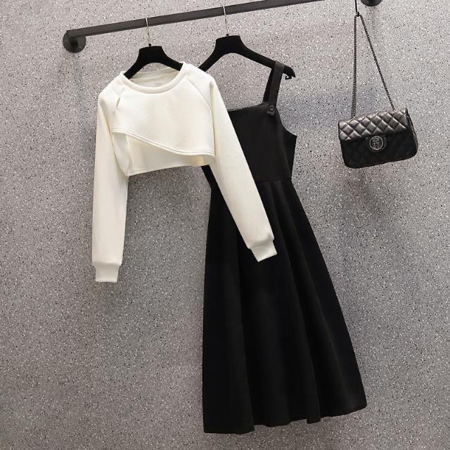 플러스 사이즈 슬링 원피스 여성 통통녀 슬리밍 세트 가을 디자인 짧은 스웨터 블라우스 투피스 세트