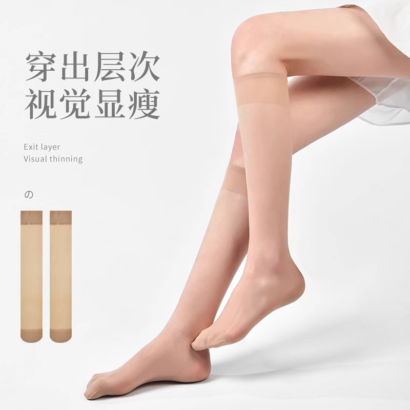 여성용 안티 걸기 실크 스타킹 여름 초박형 하프 블랙 미트 컬러 봄과 가을 어린이를위한 중간 길이 하프 튜브 송아지 양말스토어 가기