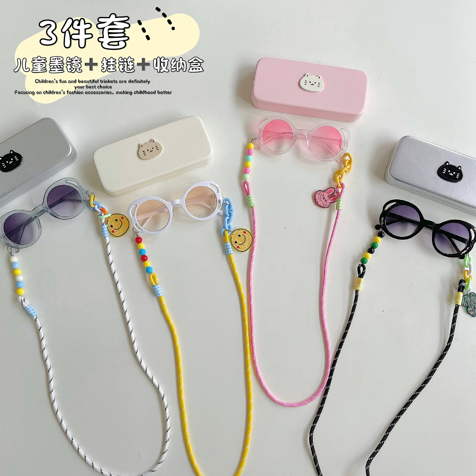 3件套 儿童墨镜+防丢挂饰+收纳盒