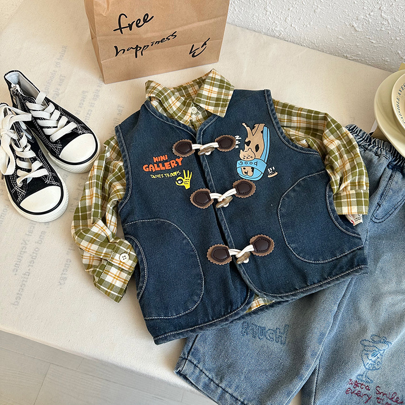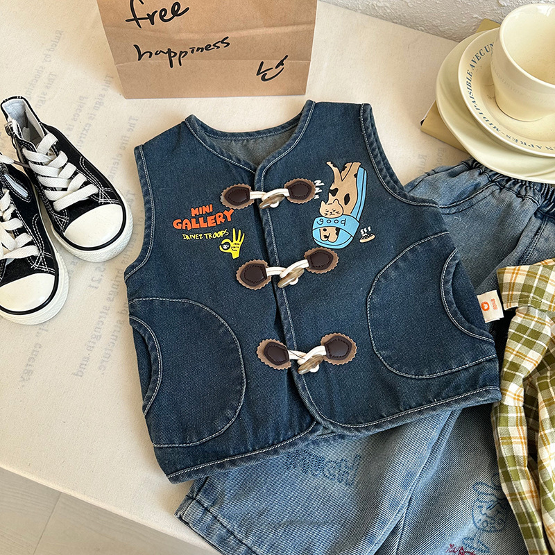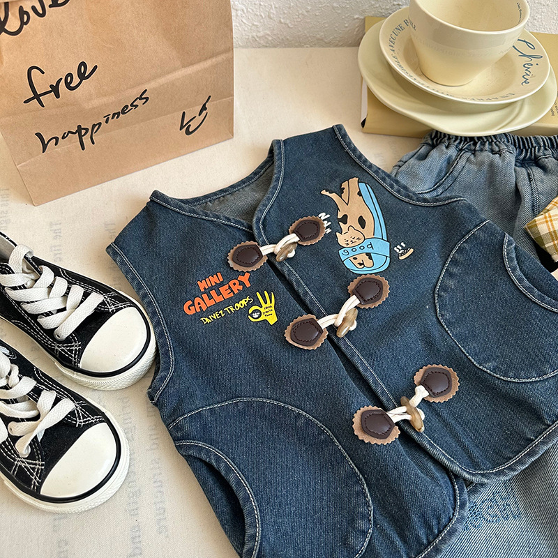 [재고] CY257757 어린이 양복 조끼 2025 봄 한국 만화 인쇄 외국식 아기 양복 조끼스토어 가기