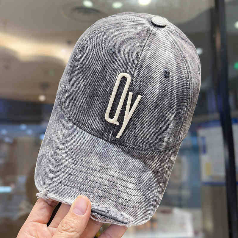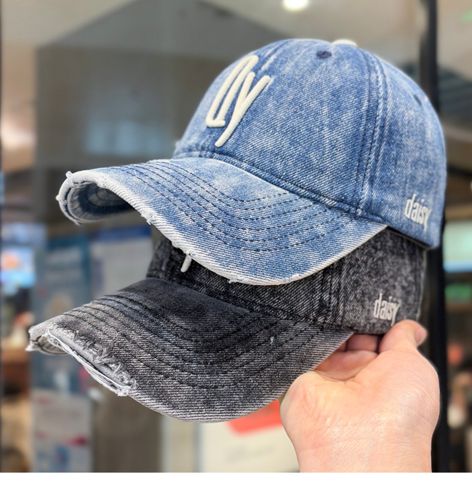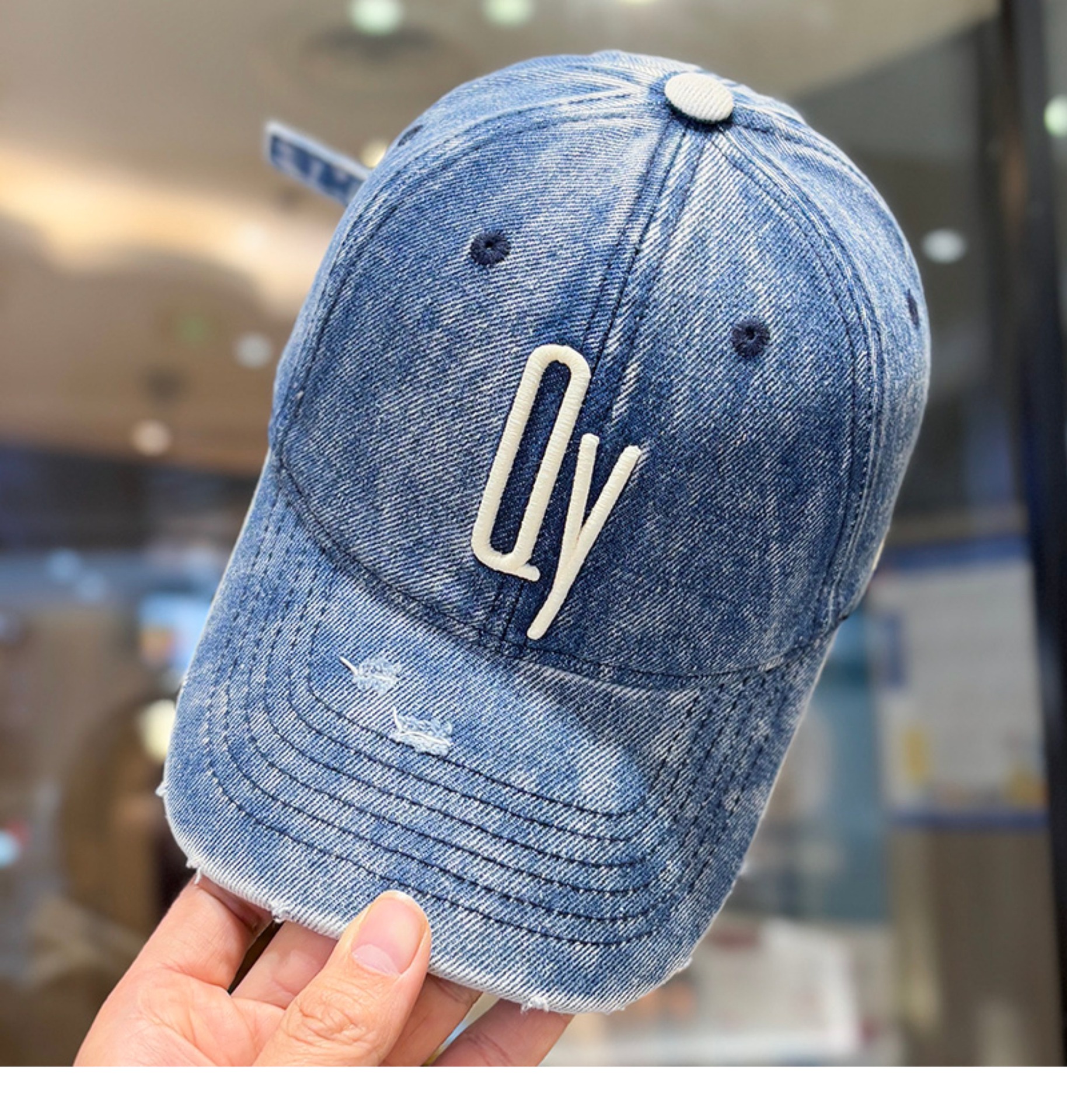한국 패션 씻은 데님 야구 모자 여자 봄 가을 새로운 올 매치 인터넷 축하 캐주얼 캡 큰 머리스토어 가기