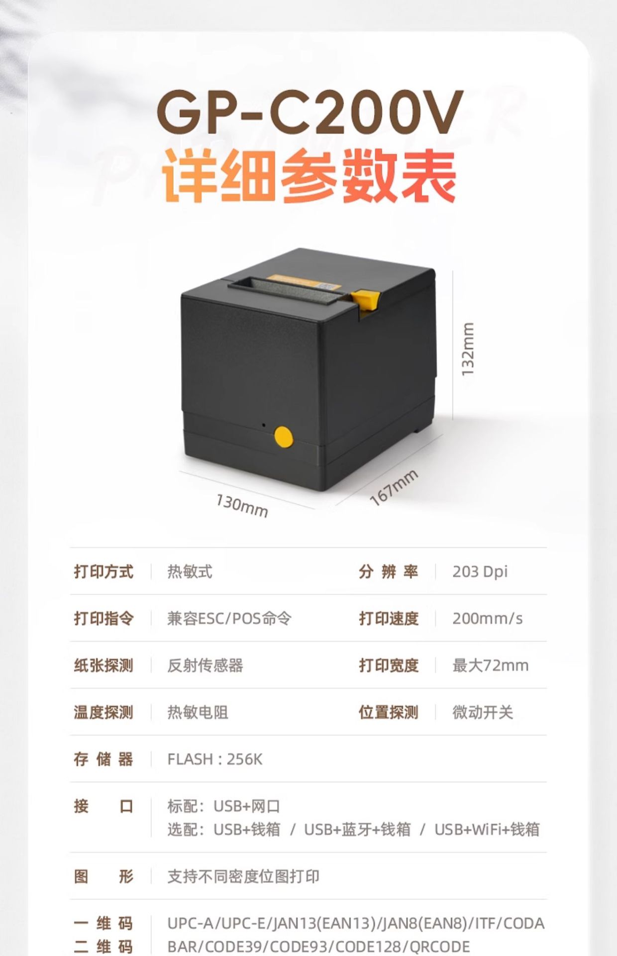 자보 GP-C200V 열 라벨 프린터 네트워크 포트 USB 프론트 데스크 주방 호텔 출납원 특수 프린터스토어 가기