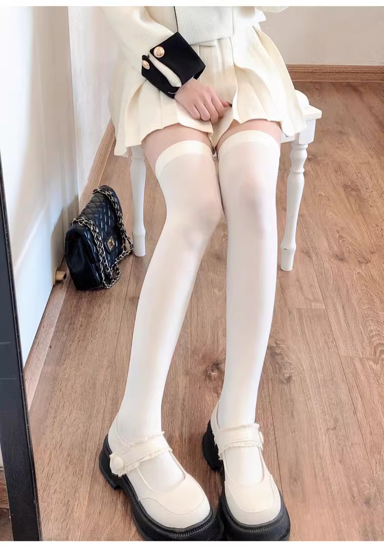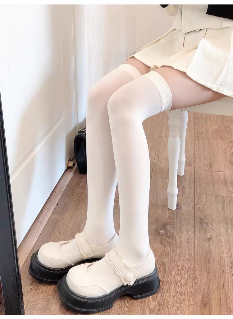 Jk 화이트 송아지 양말 여성의 봄과 가을 얇은 무릎 중간 길이 양말 일본식 밀크 화이트 더미 양말 화이트 실크베이스 양말스토어 가기