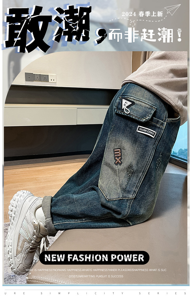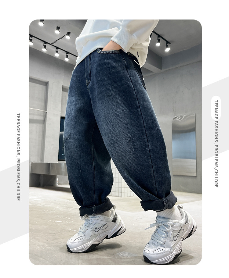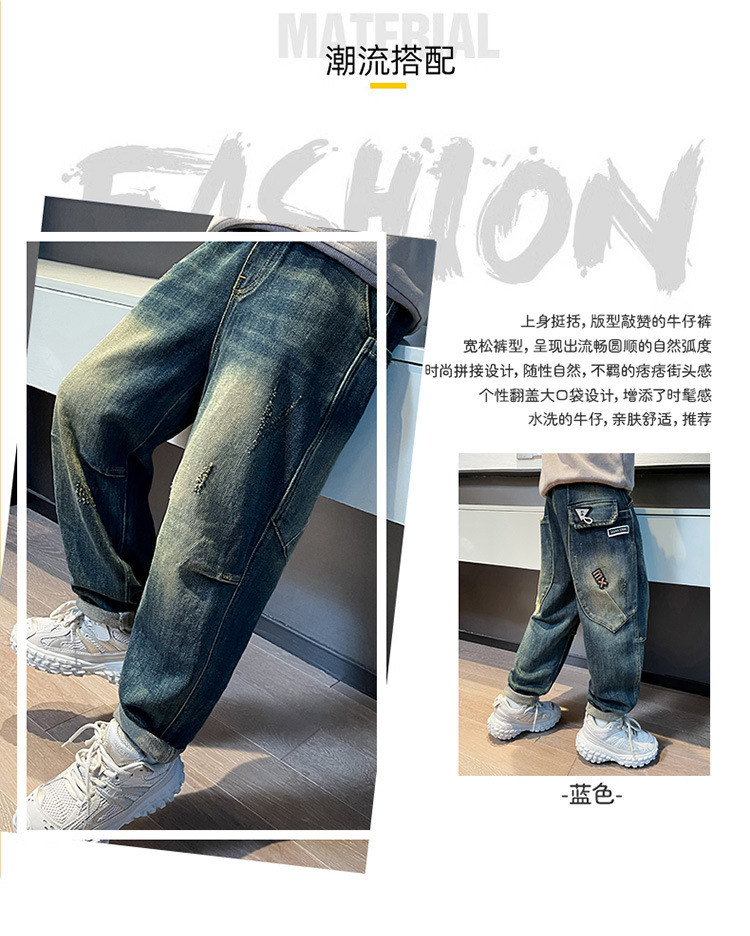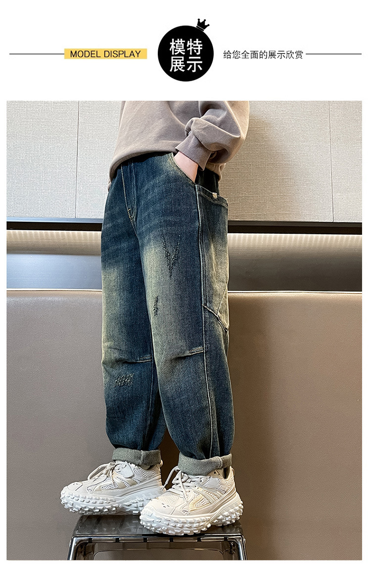 아동복 소년 봄과 가을 바지 서양식 좁은 직선 바지 바지 어린이 새로운 패션 봄 착용 소년 청바지스토어 가기