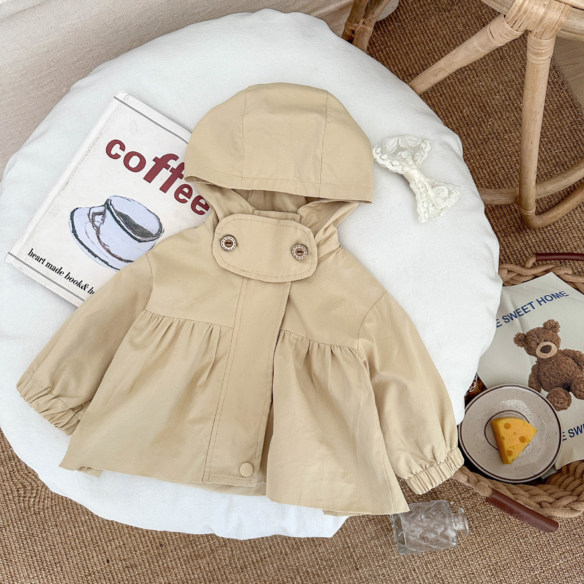 소녀 윈드 브레이커 코트 봄 2025 새로운 스타일 어린이 후드 캐주얼 재킷 가을 아기 방풍 탑