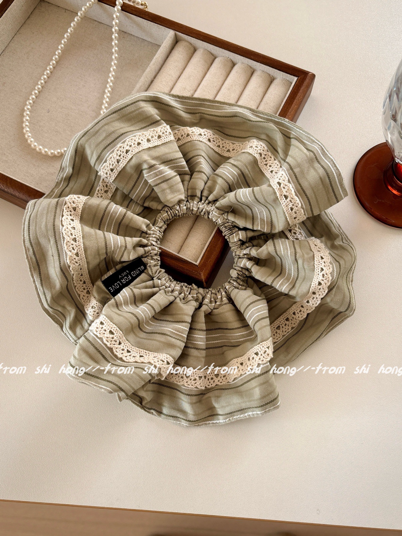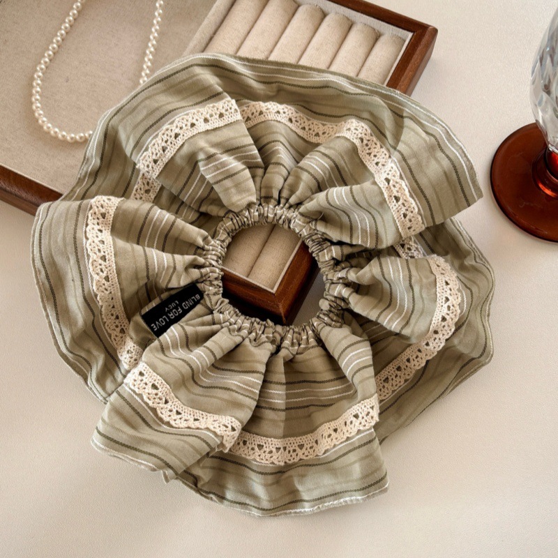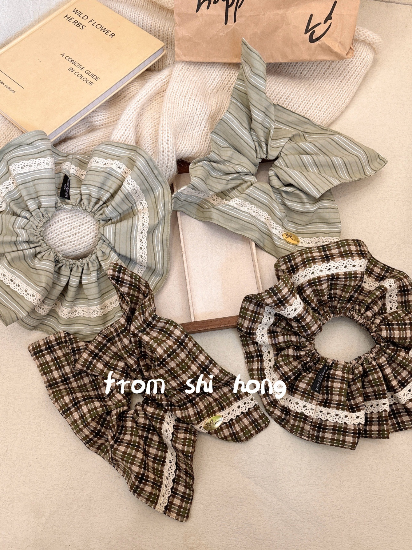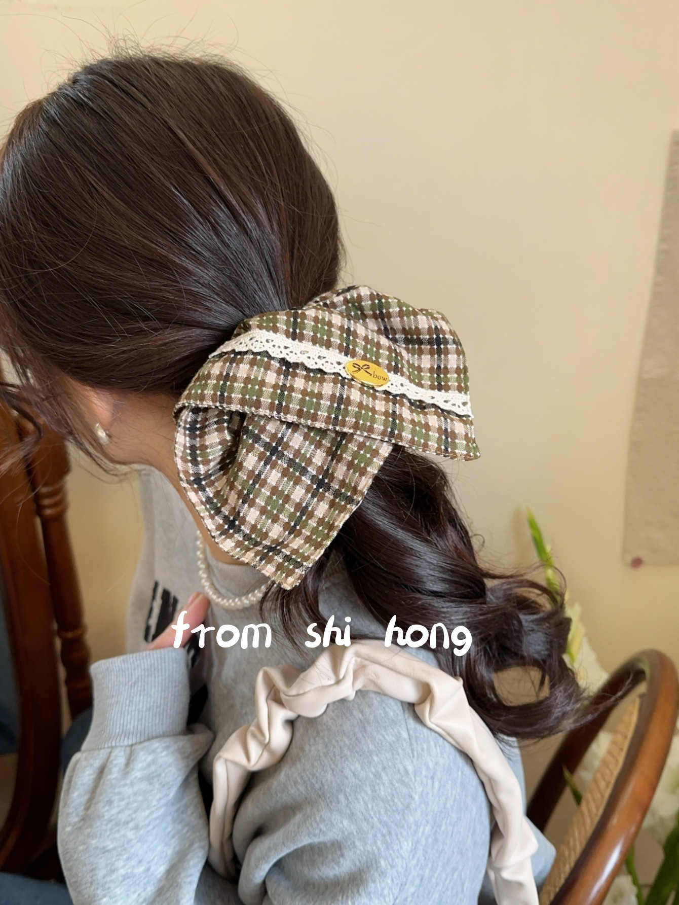 신선한 격자 무늬 패브릭 레이스 대형 Intestine 헤어 링 소녀 모리 스타일 낮은 포니 테일 스퀘어 스카프 머리띠 헤어 스트랩 헤어 액세서리