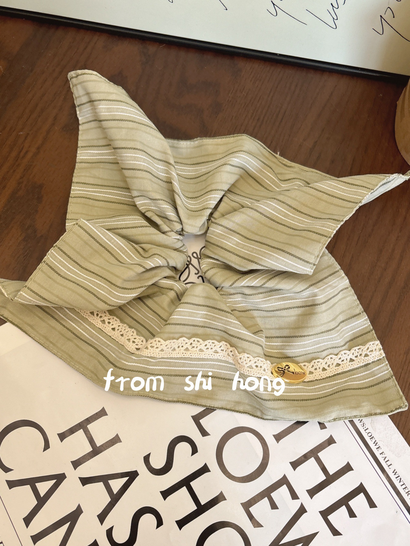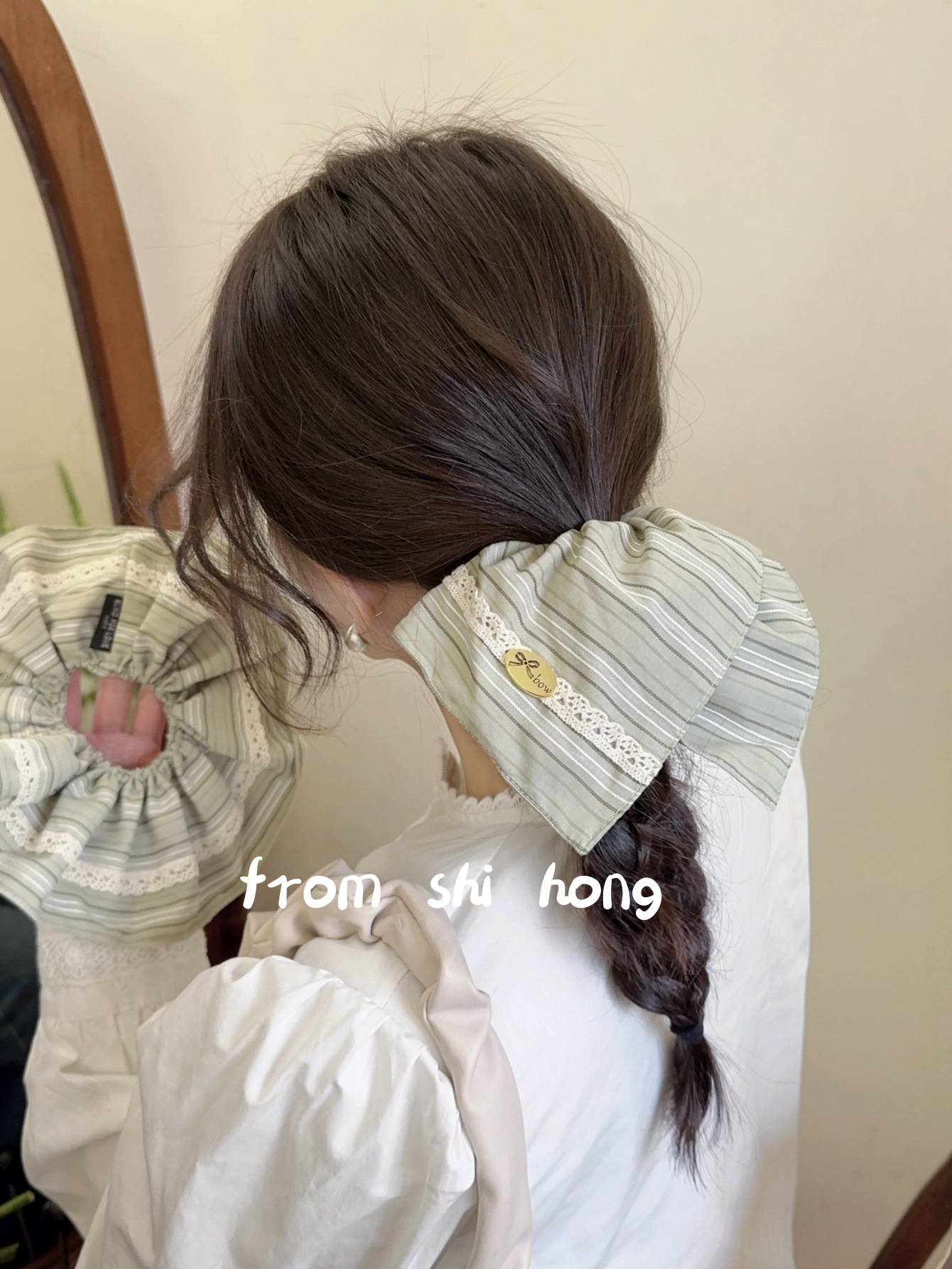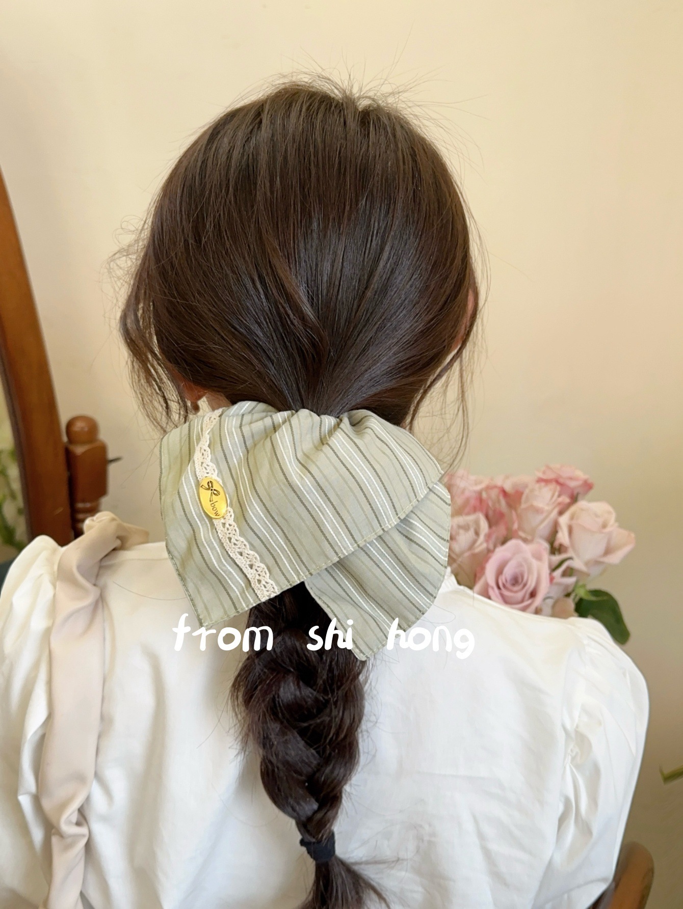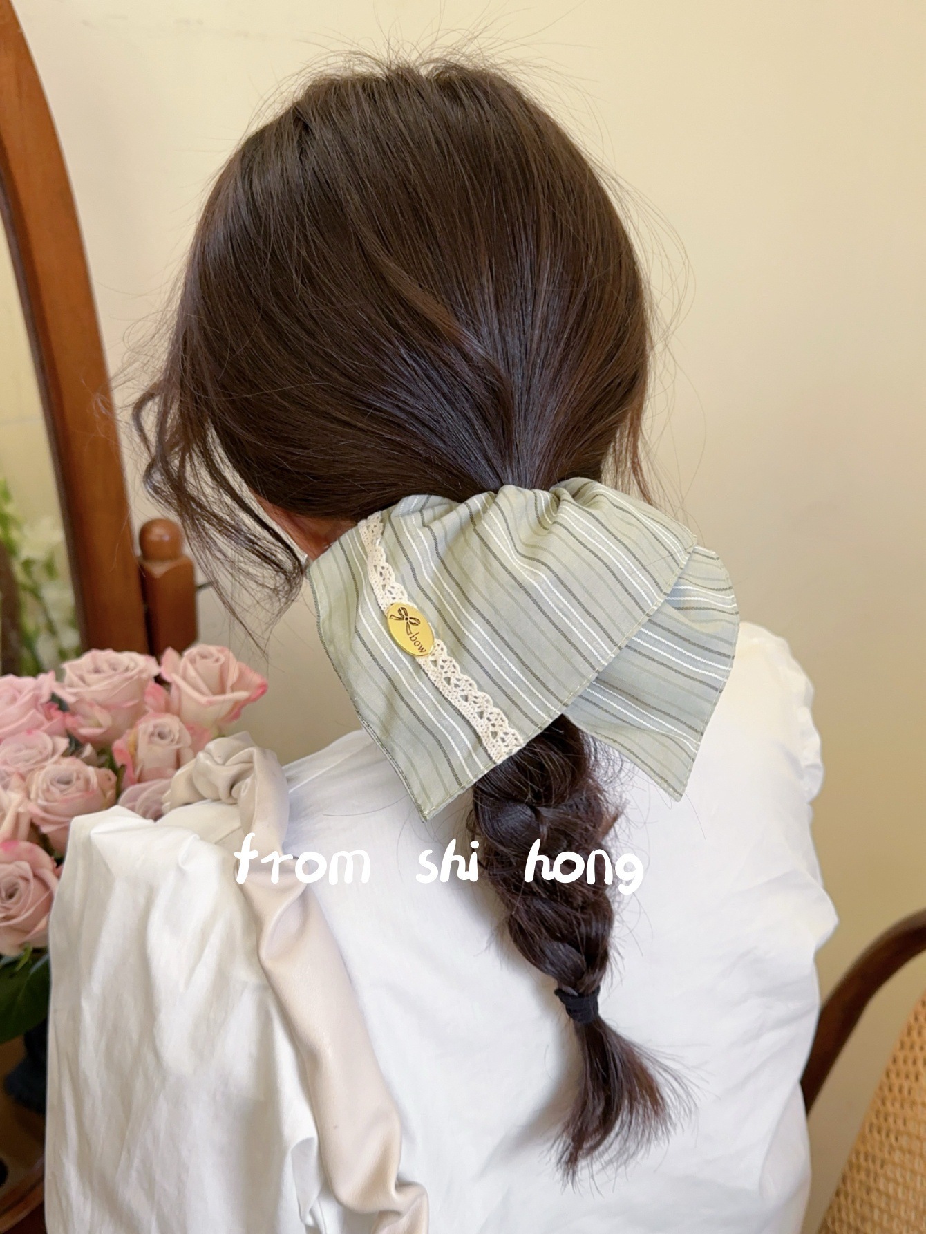 신선한 격자 무늬 패브릭 레이스 대형 Intestine 헤어 링 소녀 모리 스타일 낮은 포니 테일 스퀘어 스카프 머리띠 헤어 스트랩 헤어 액세서리