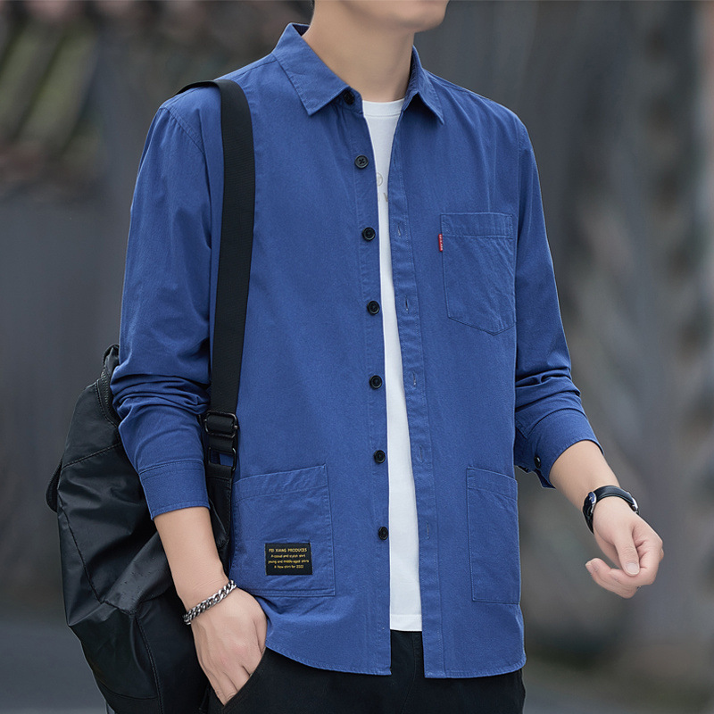 Lj 봄 셔츠 코트 남성 캐주얼 멀티 포켓 순수/면 남성 패션 브랜드 긴 소매 셔츠 크록 코트 새로운 스타일