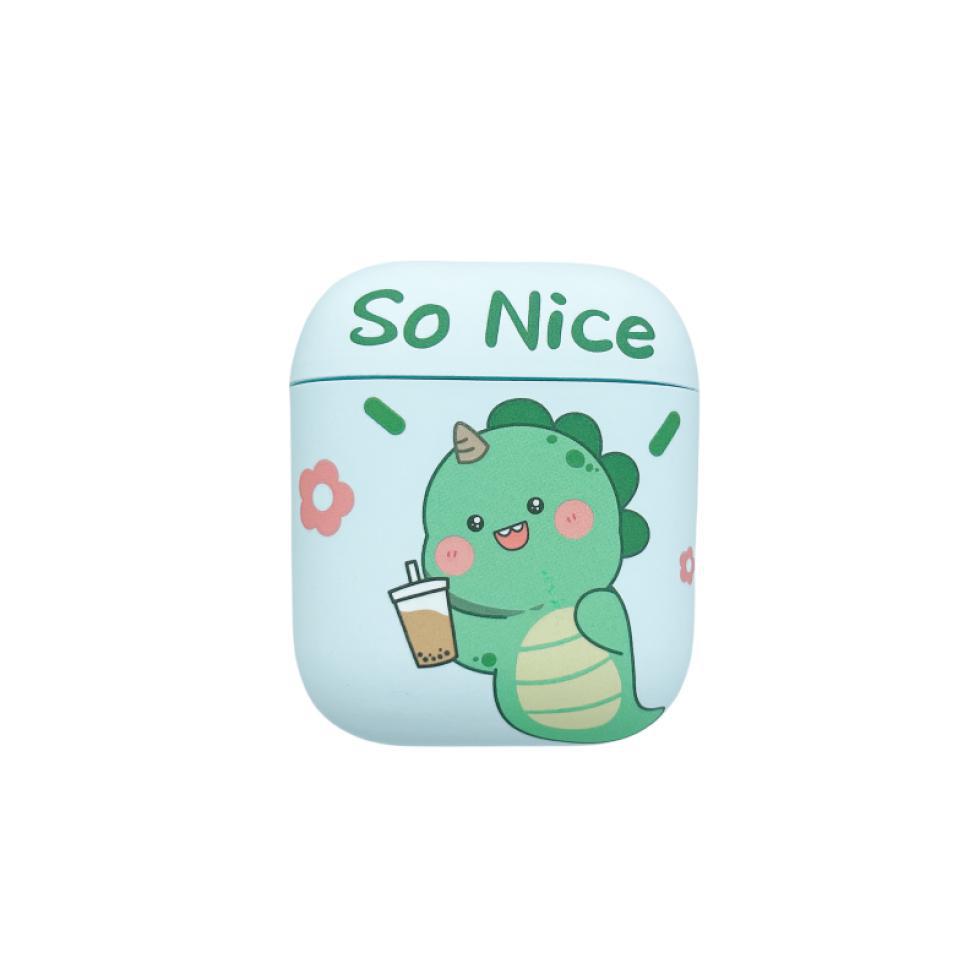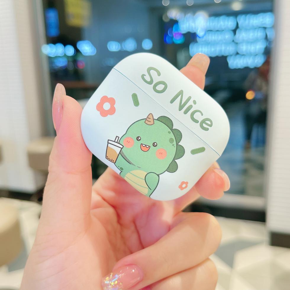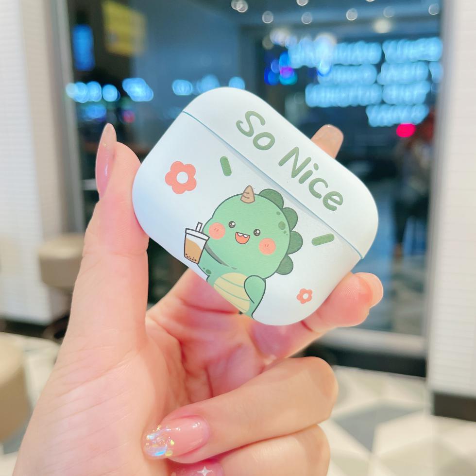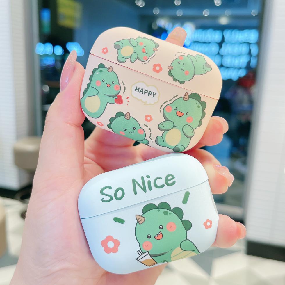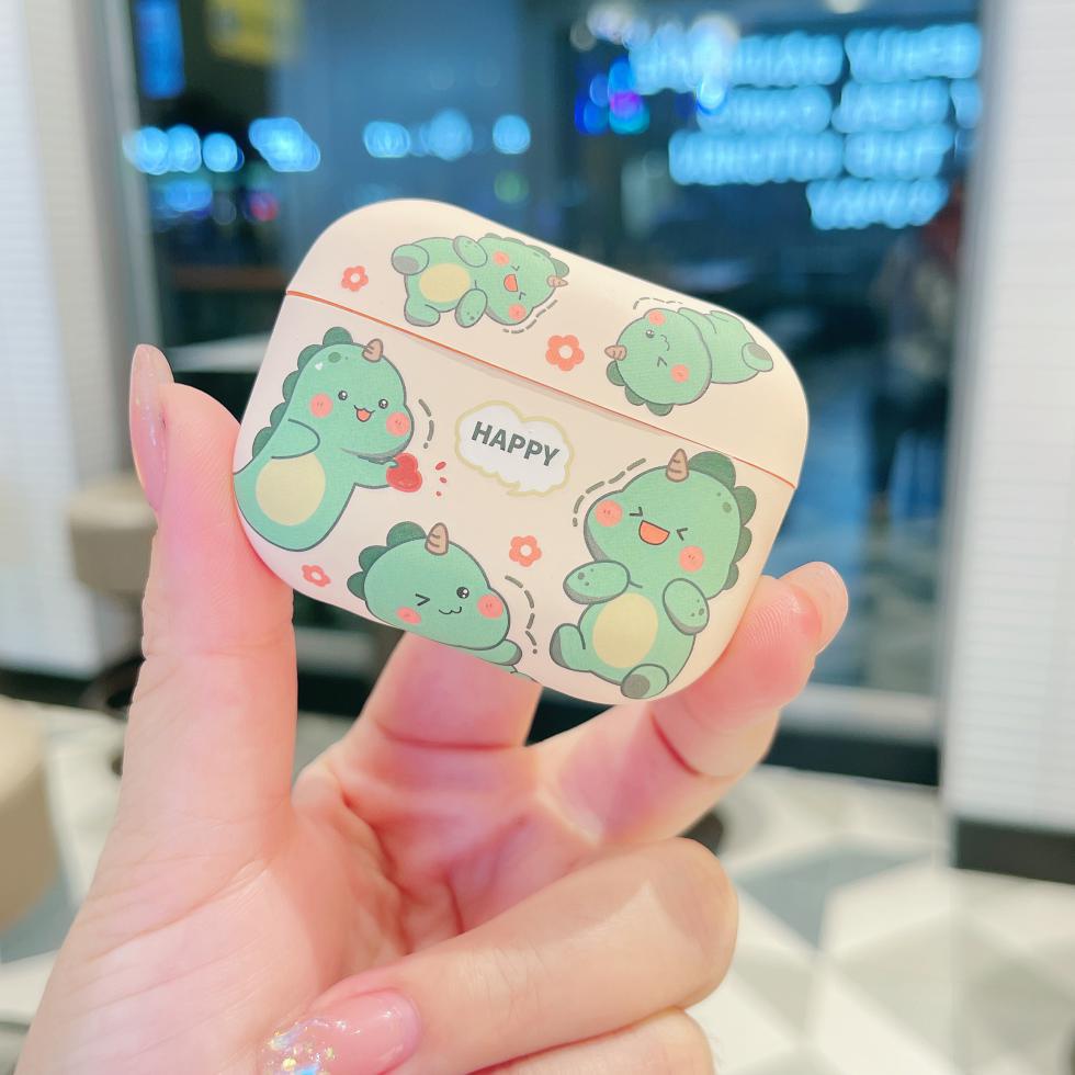 귀여운 행복 창조적 인 만화 공룡 AirPods2 화이트 하단 드롭 방지 새로운 이어폰 케이스에 적합