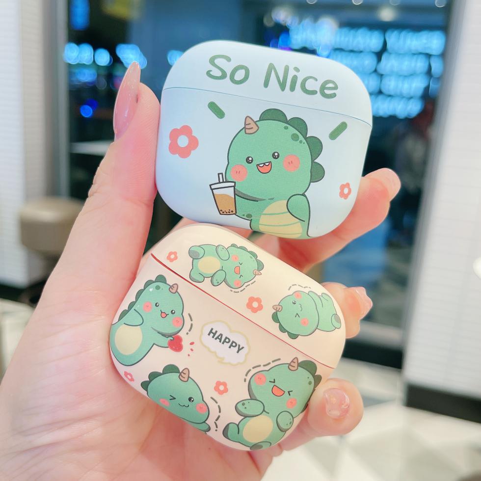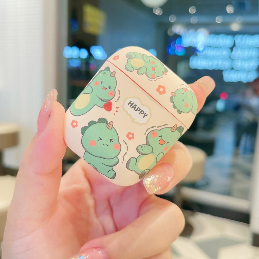 귀여운 행복 창조적 인 만화 공룡 AirPods2 화이트 하단 드롭 방지 새로운 이어폰 케이스에 적합스토어 가기