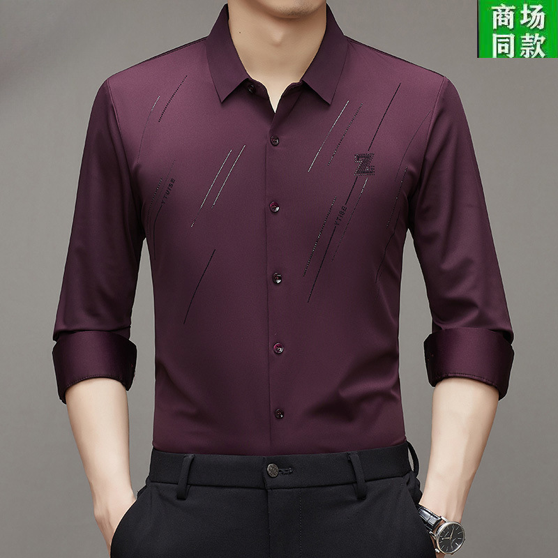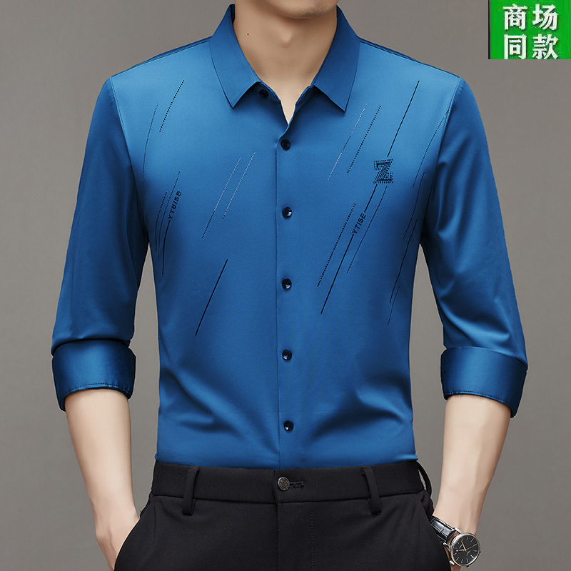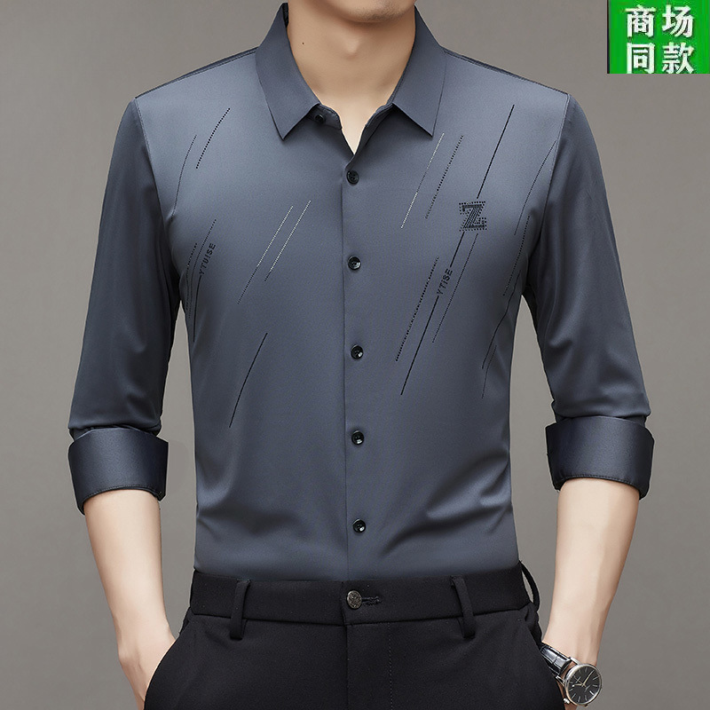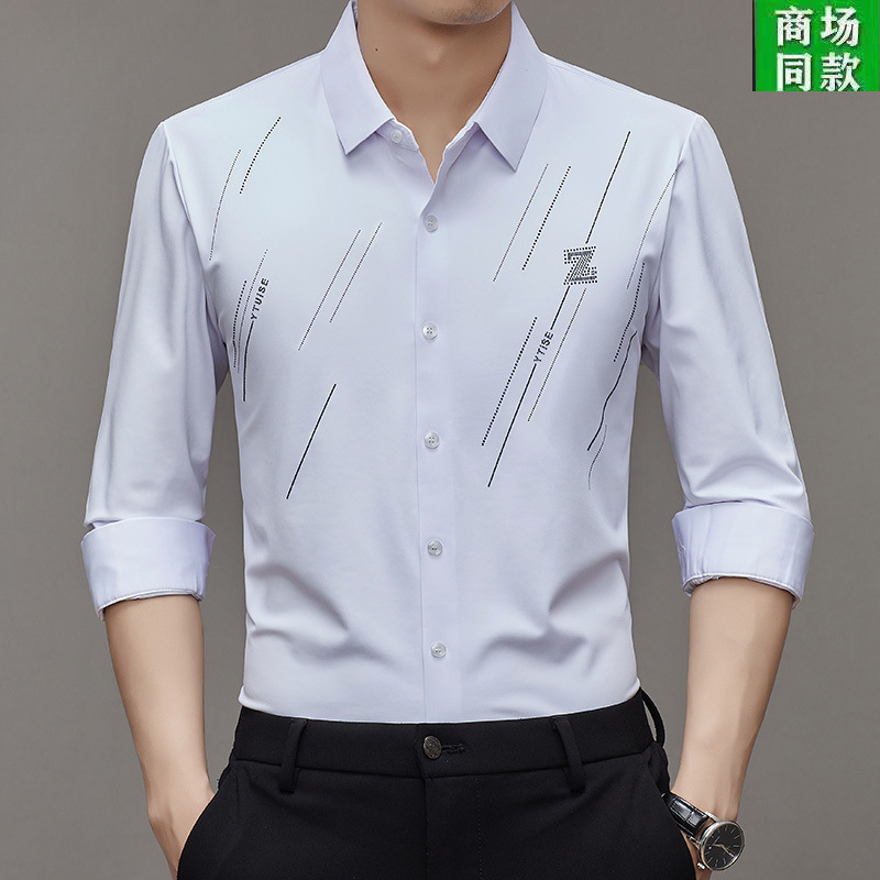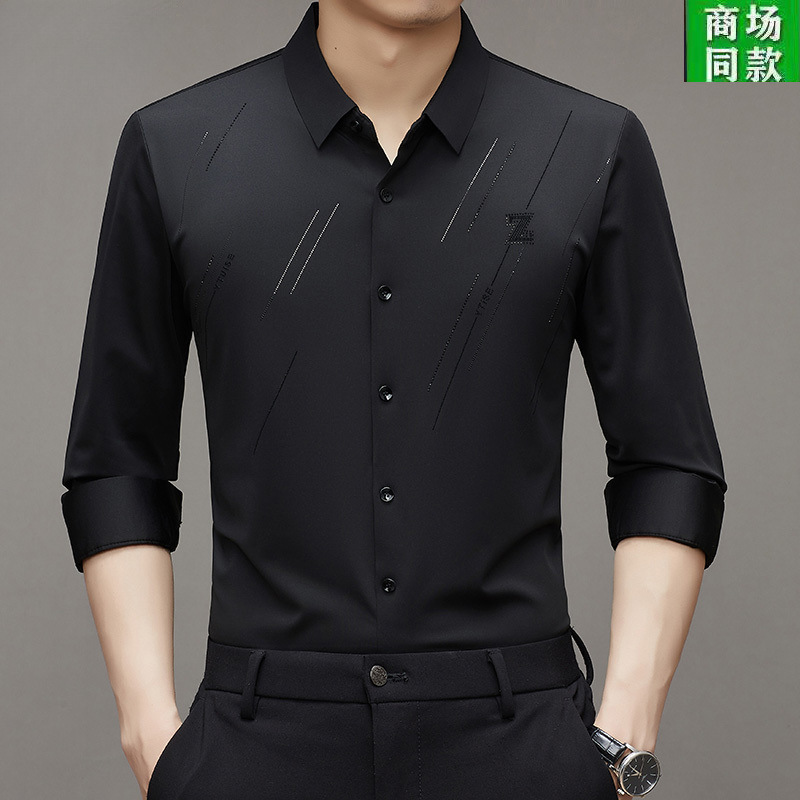 Lj2025春季高弹力无痕免烫衬衣爸爸装冰丝男士衬衫长袖薄款上衣스토어 가기
