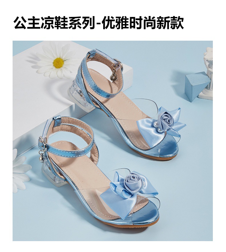 소녀 샌들 2025 여름 새로운 꽃 아이들 오픈 토 공주 신발 어린 소녀 하이힐 샌들 무대 신발스토어 가기