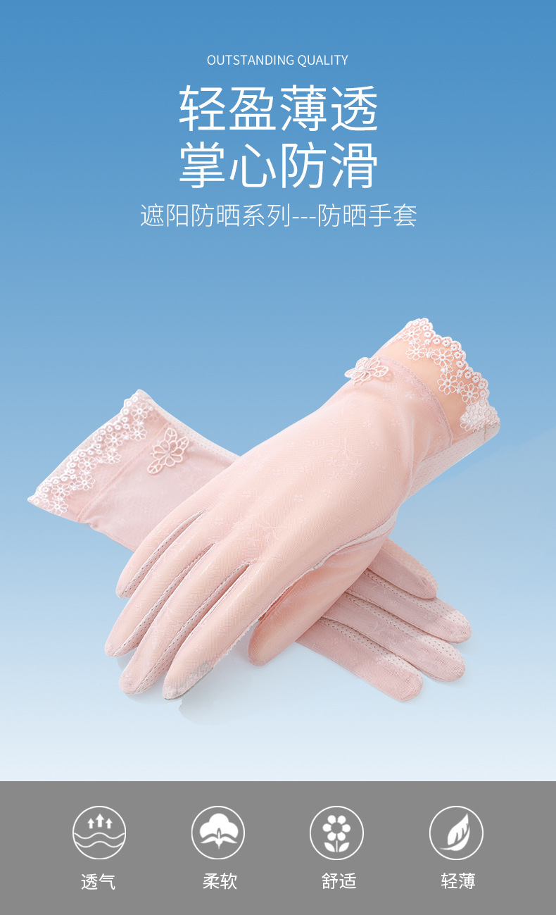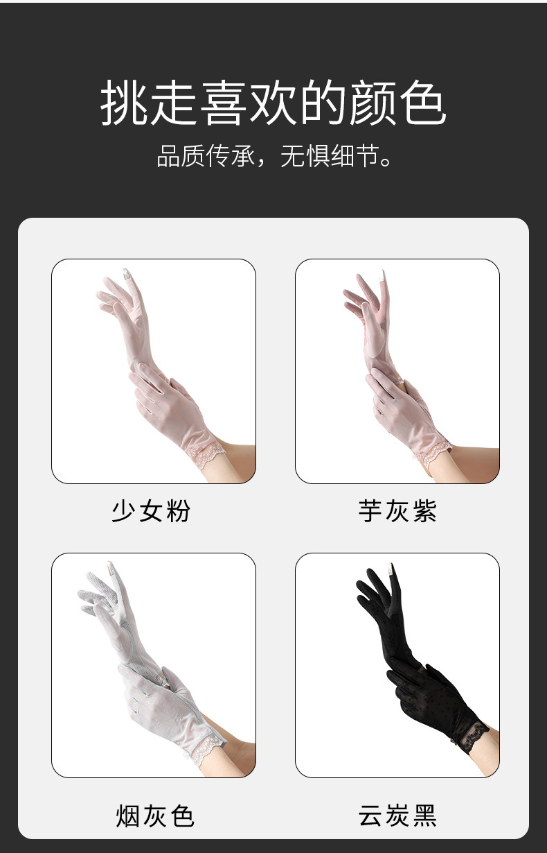 선스크린 장갑 여성의 미끄럼 방지 아이스 실크 야외 사이클링 운전 여름 레이스 얇은 고탄성 터치 스크린 통기성 피부 친화적