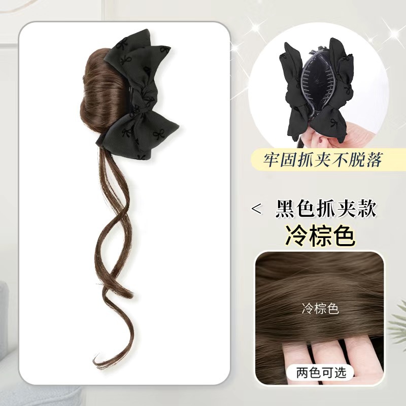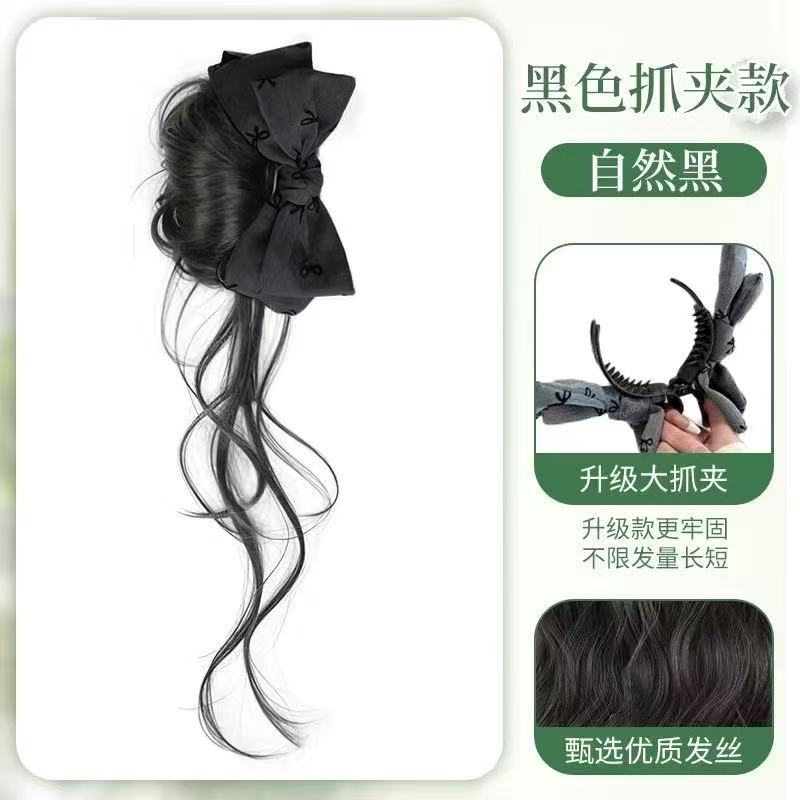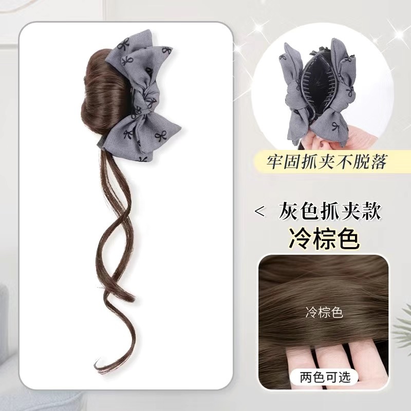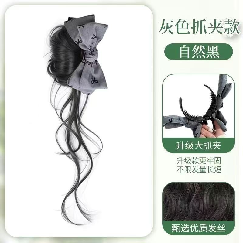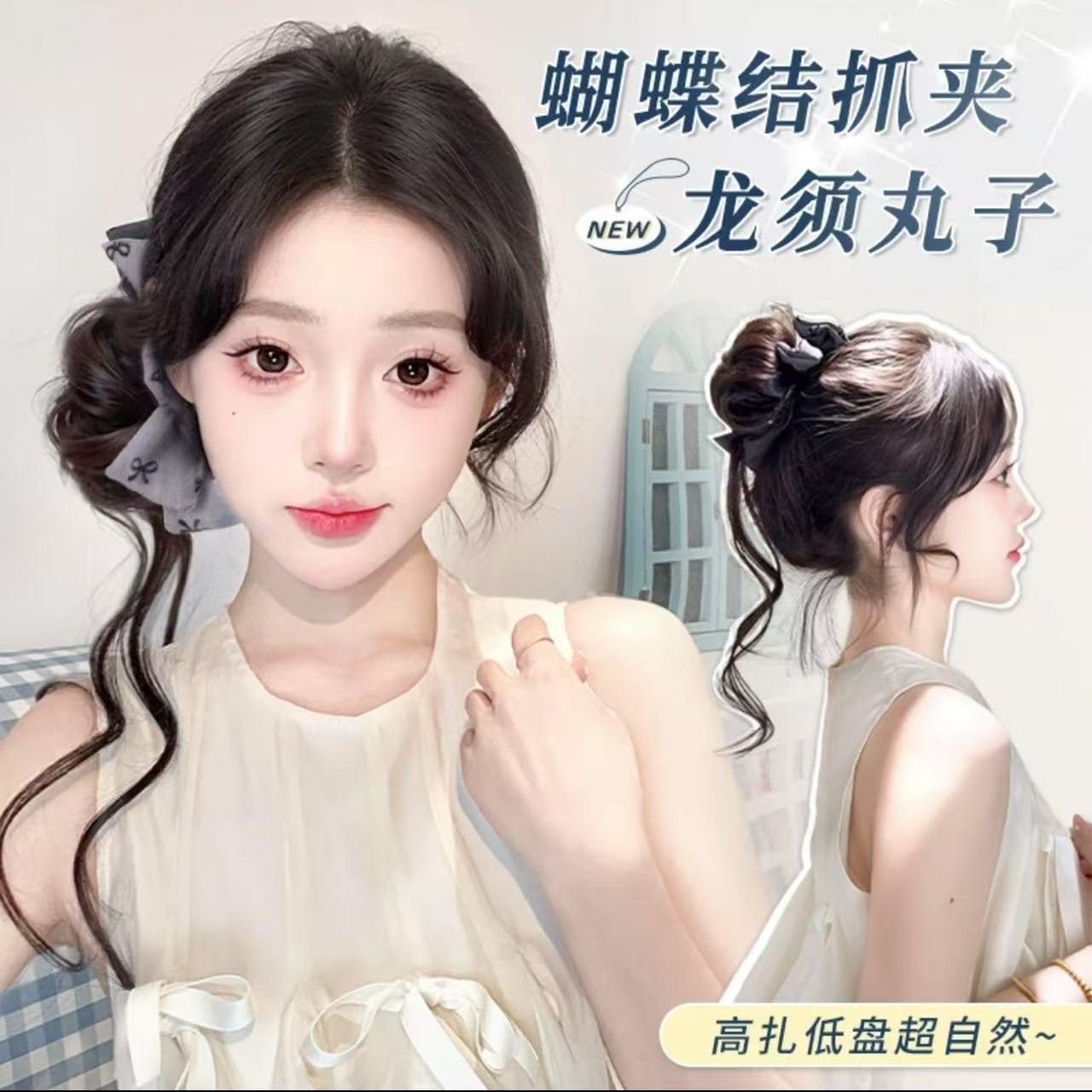 Marubeni 헤드 가발 여성 자연 시뮬레이션 그래 클립 활 드래곤 부시 Marubeni 헤드 추가 볼륨 푹신한 가발 접시 헤어 신