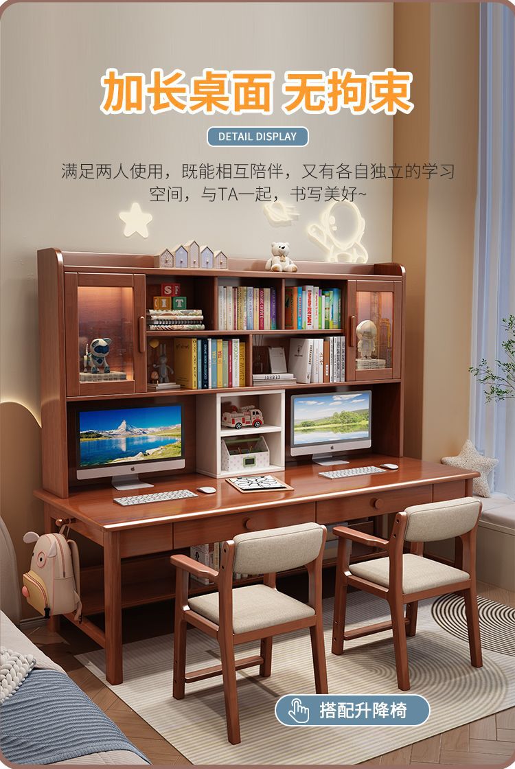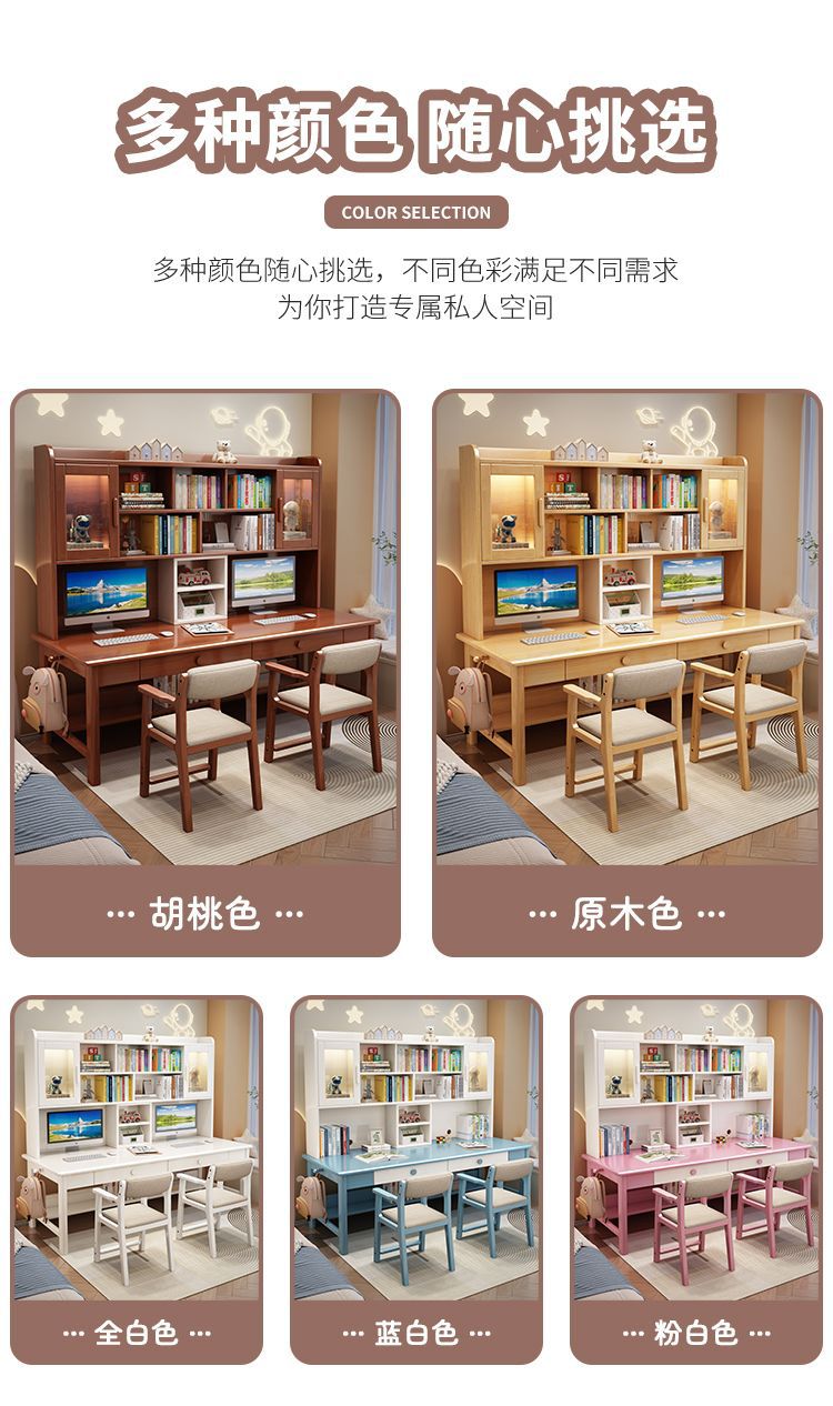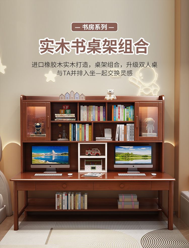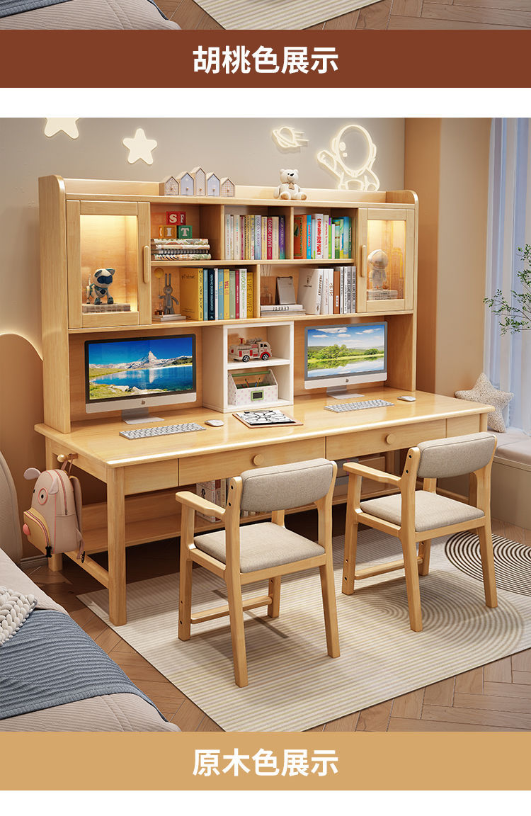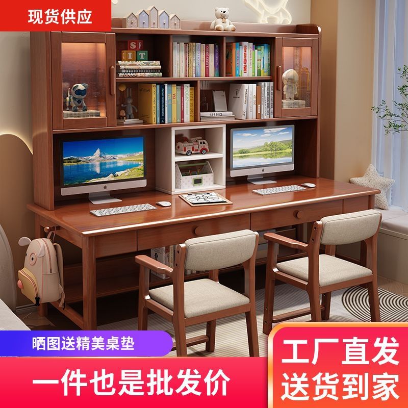 더블 컴퓨터 책상 솔리드 우드 데스크 책장 통합 연구 테이블 홈 초등 및 중등 학교 학생 테이블 및 의자 쓰기스토어 가기