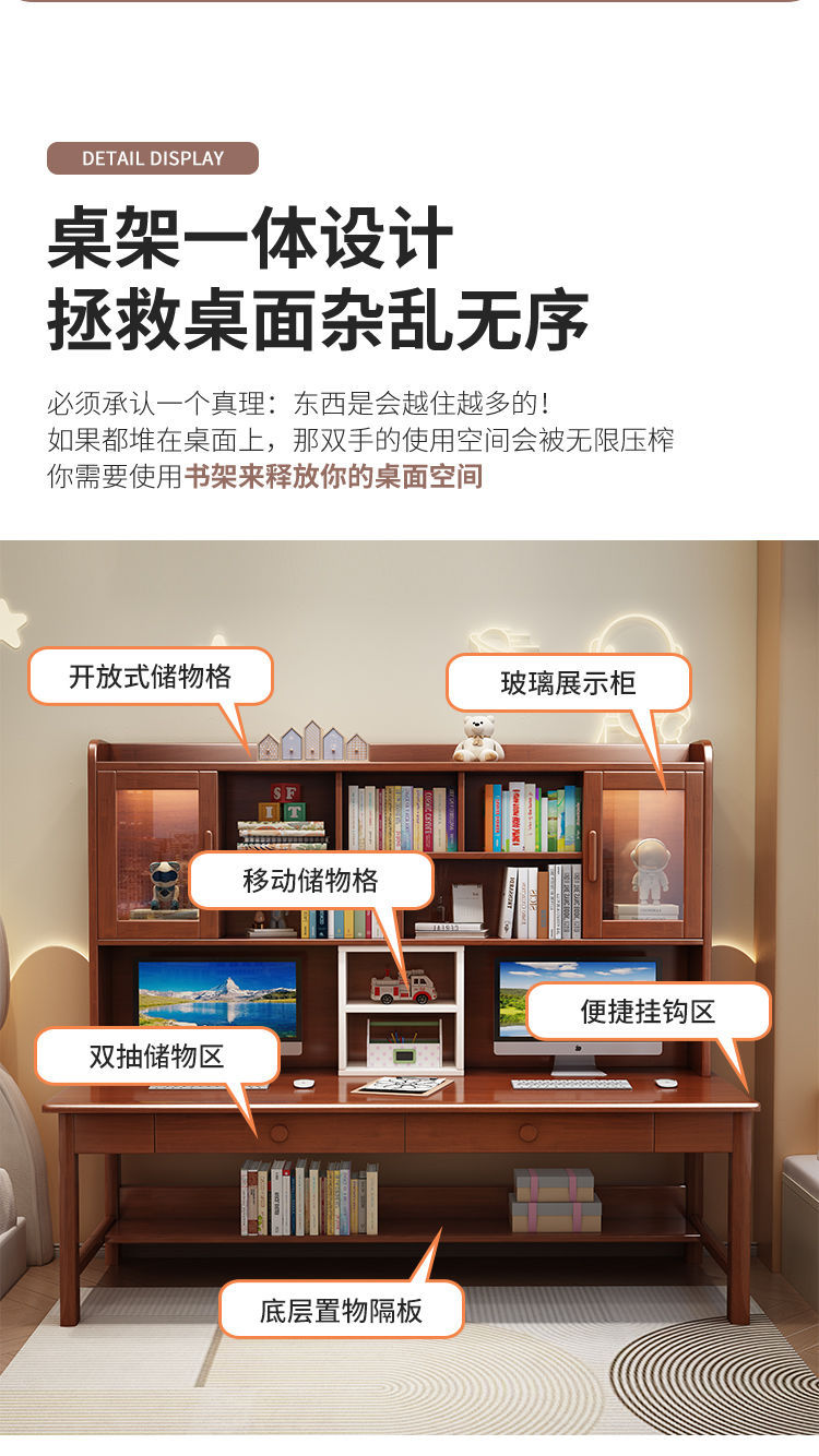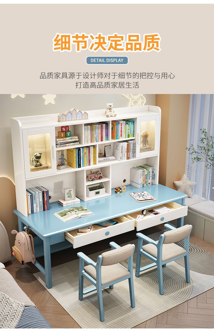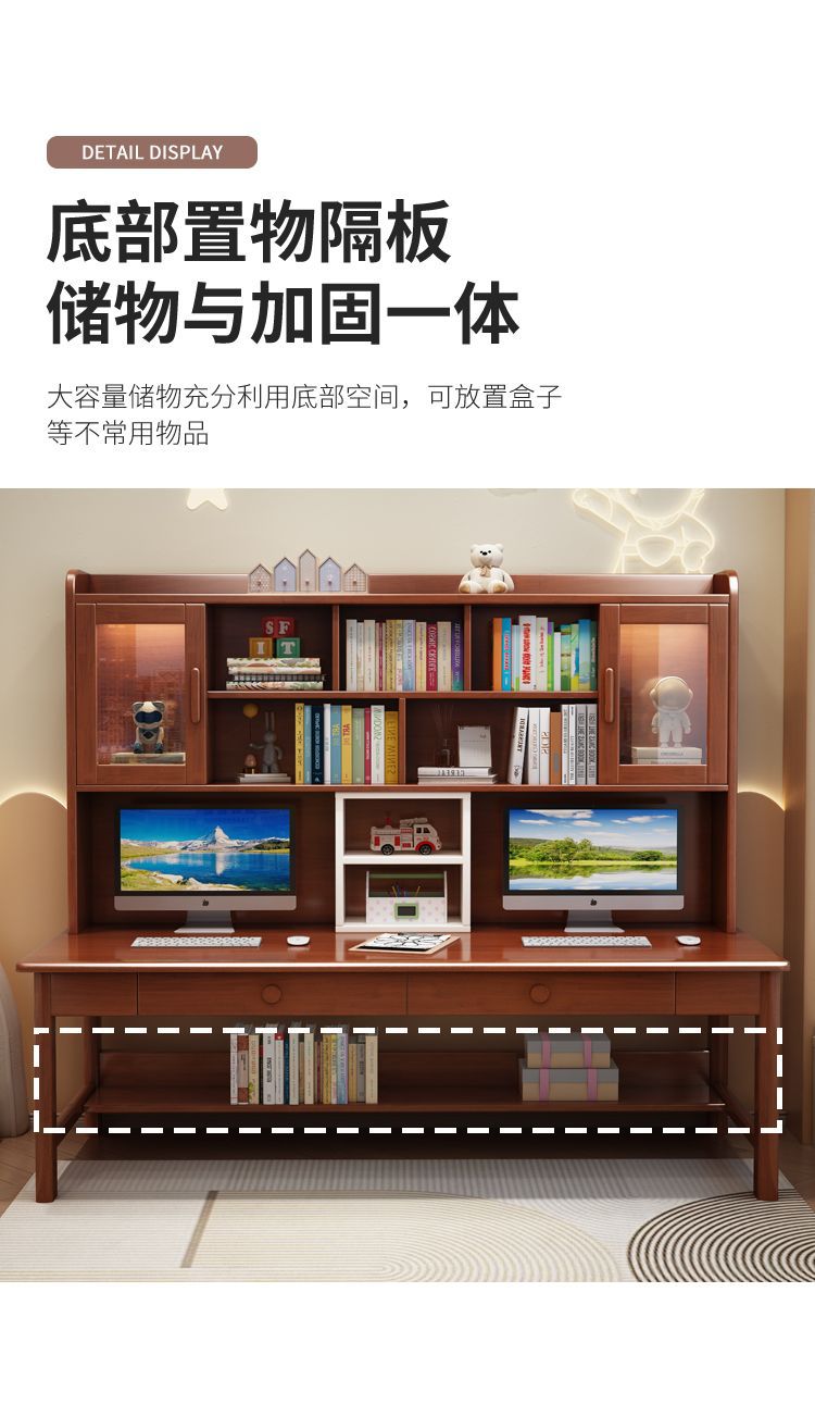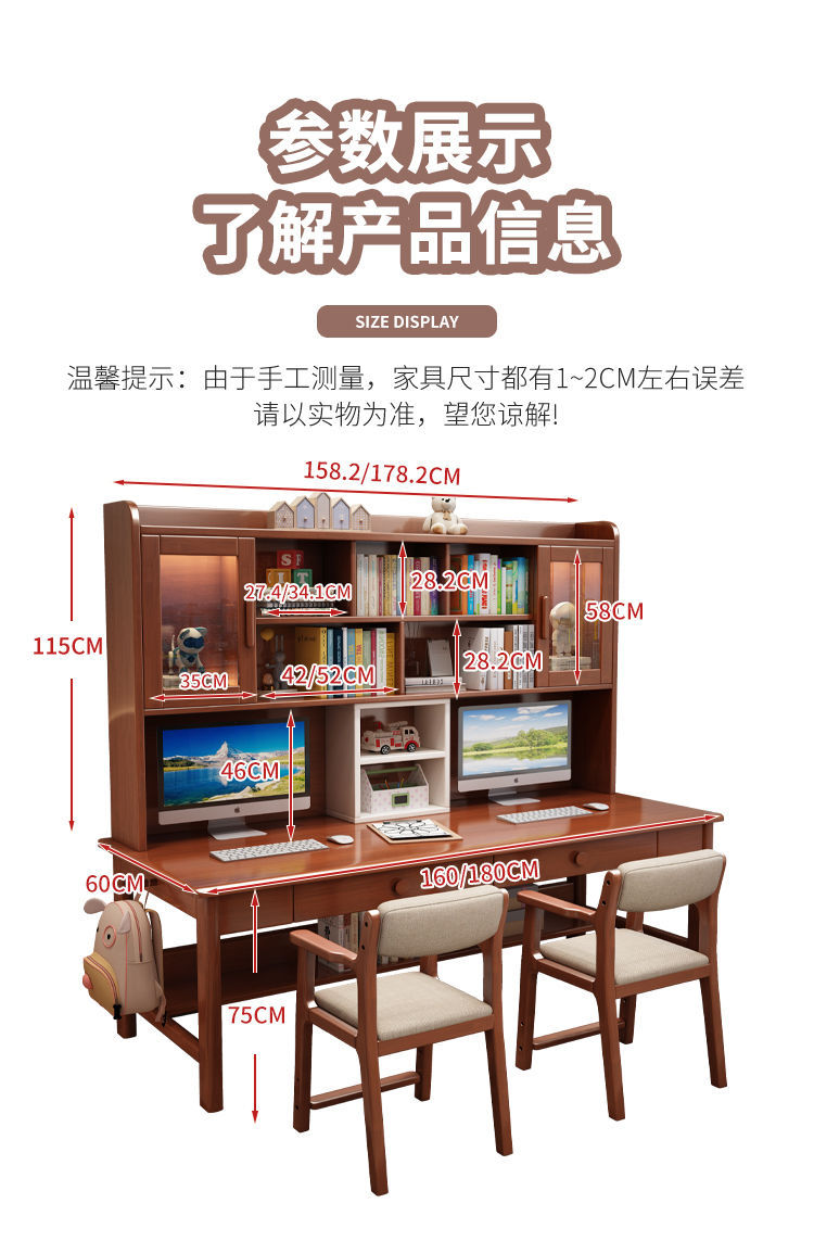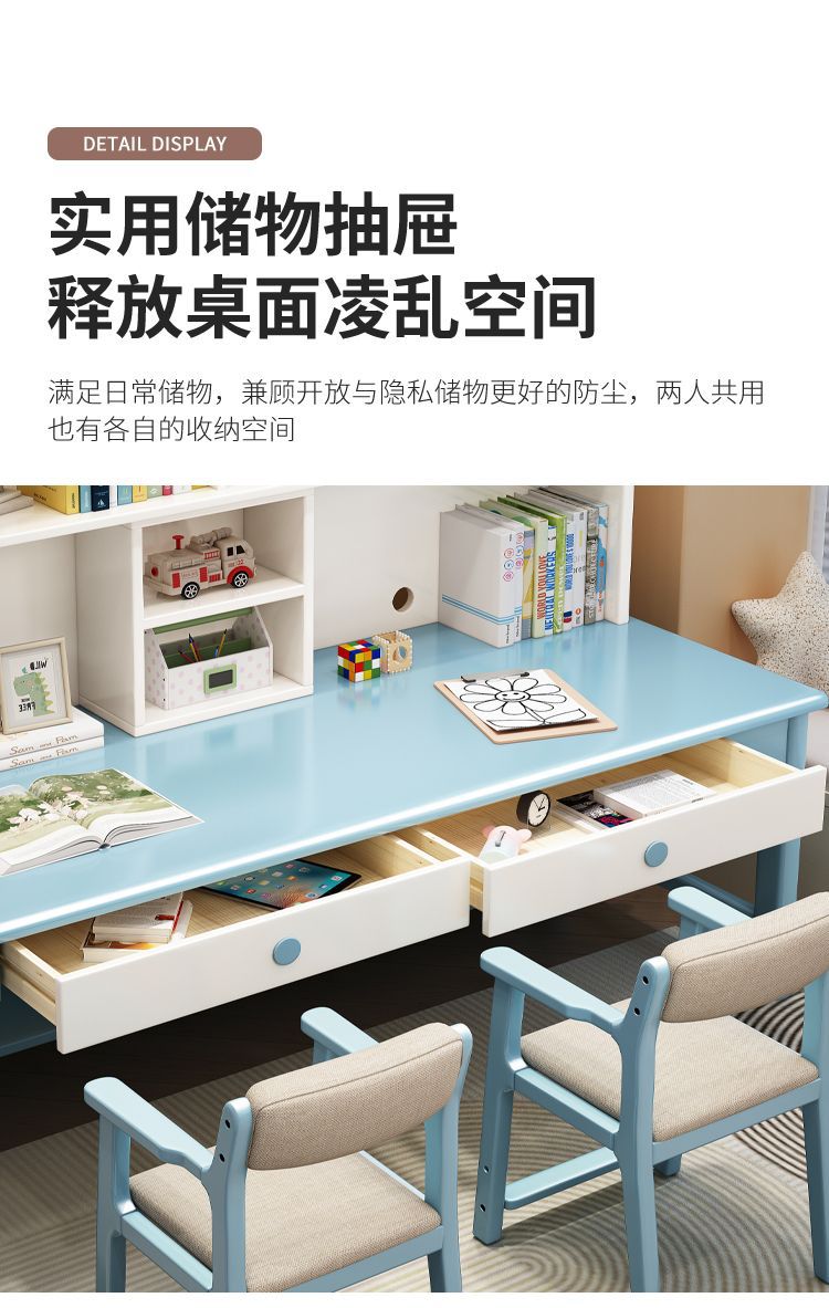 더블 컴퓨터 책상 솔리드 우드 데스크 책장 통합 연구 테이블 홈 초등 및 중등 학교 학생 테이블 및 의자 쓰기스토어 가기