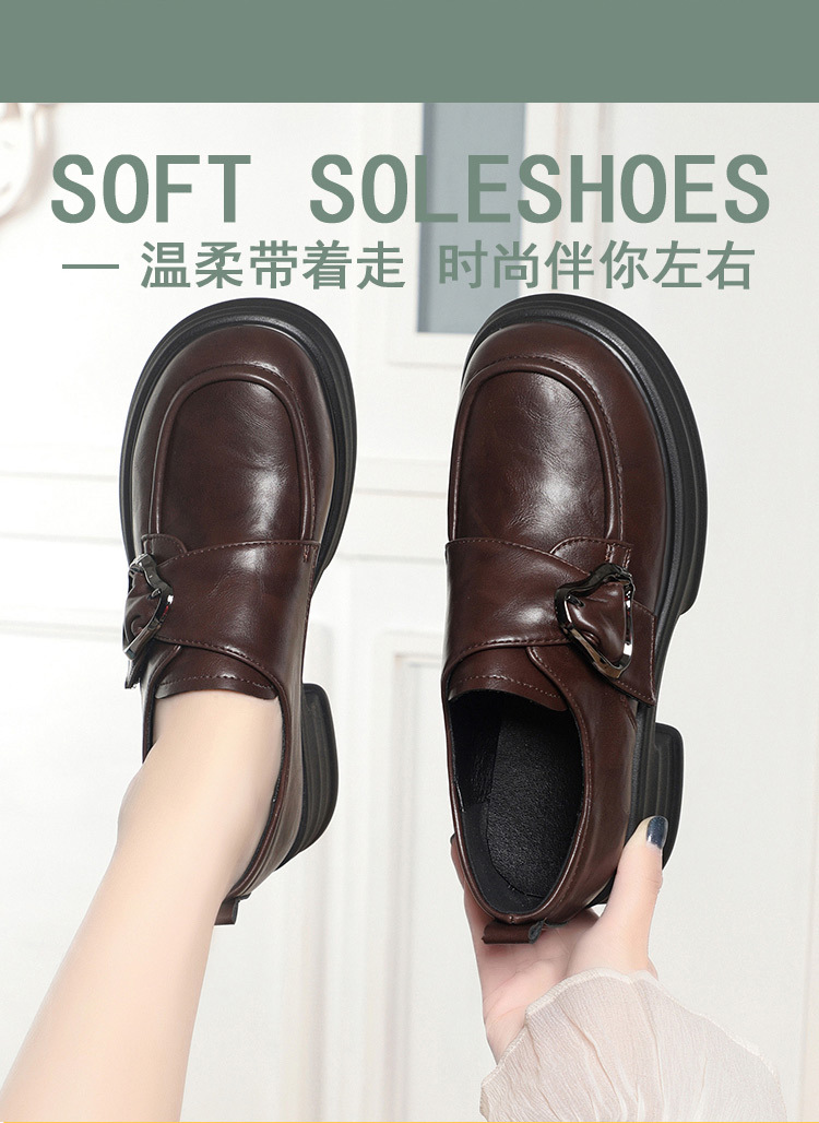 두꺼운 굽 두꺼운 밑창 로퍼 여성 봄 새 여성 신발 부드러운 밑창 복고풍 단일 신발 둥근 발가락 여성용 가죽 신발스토어 가기