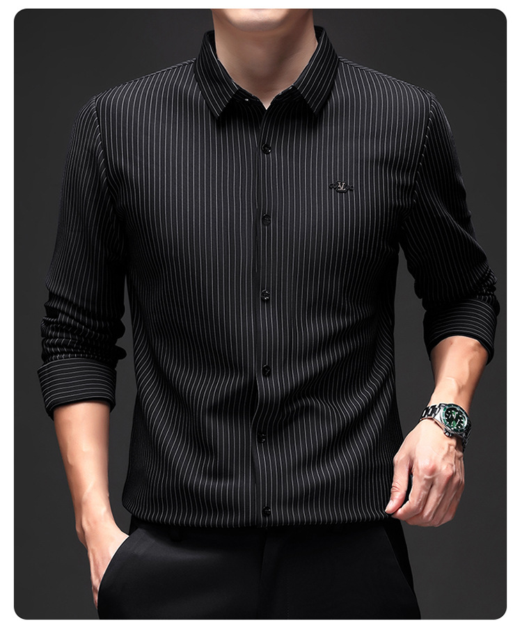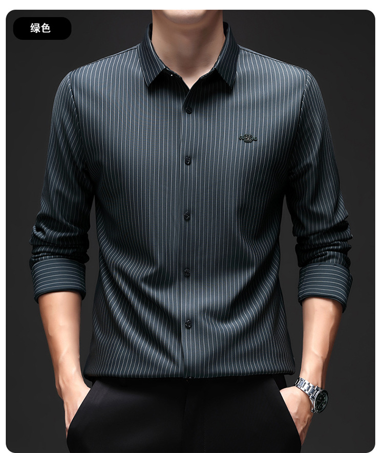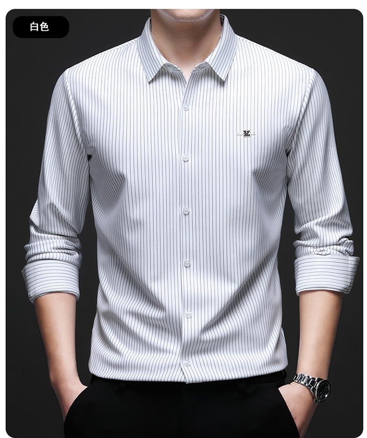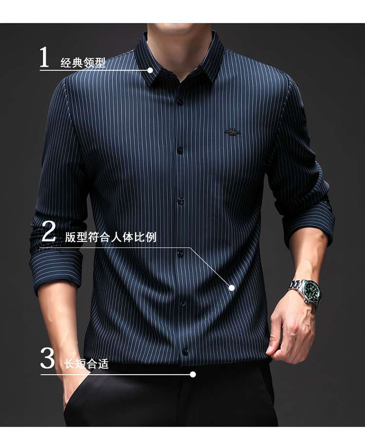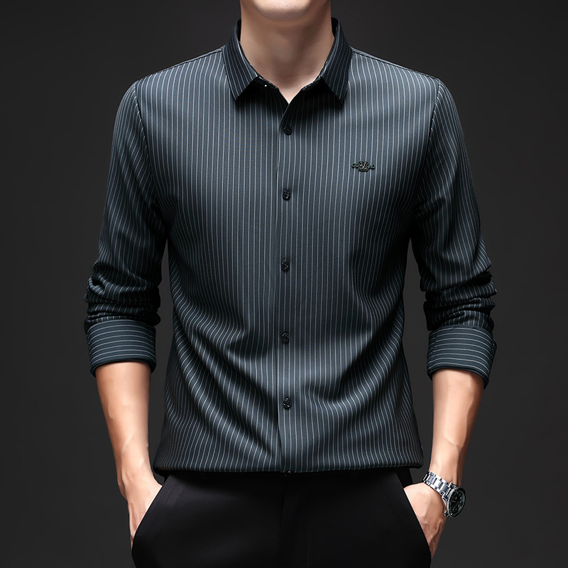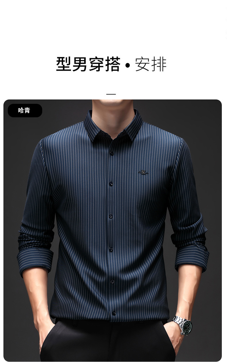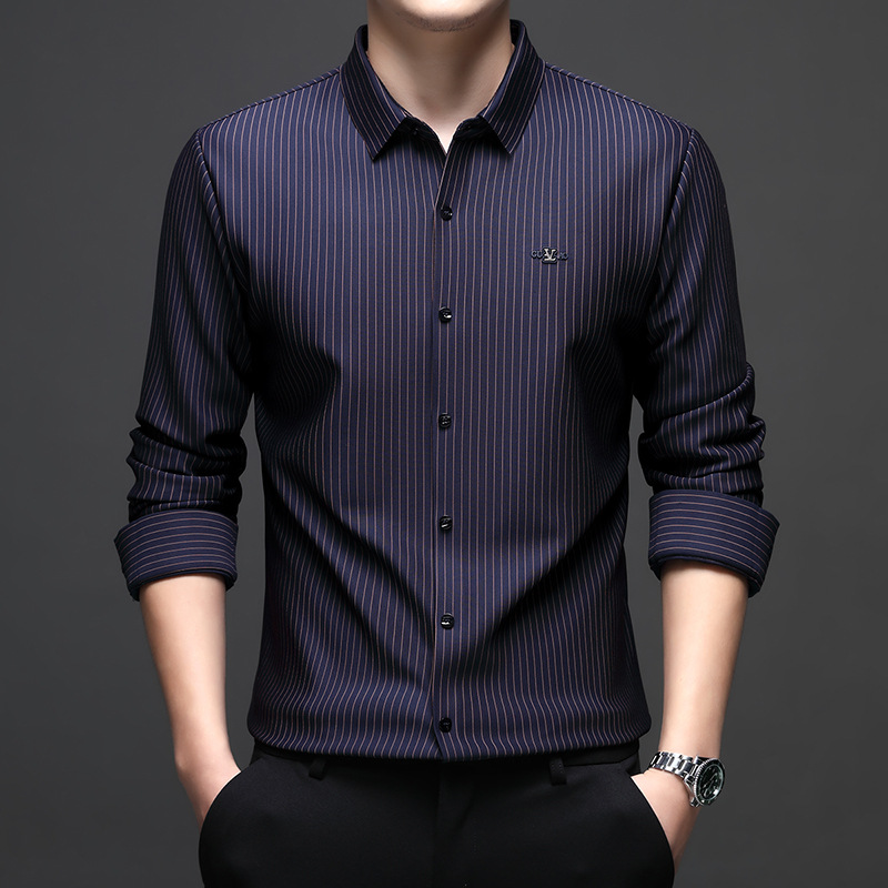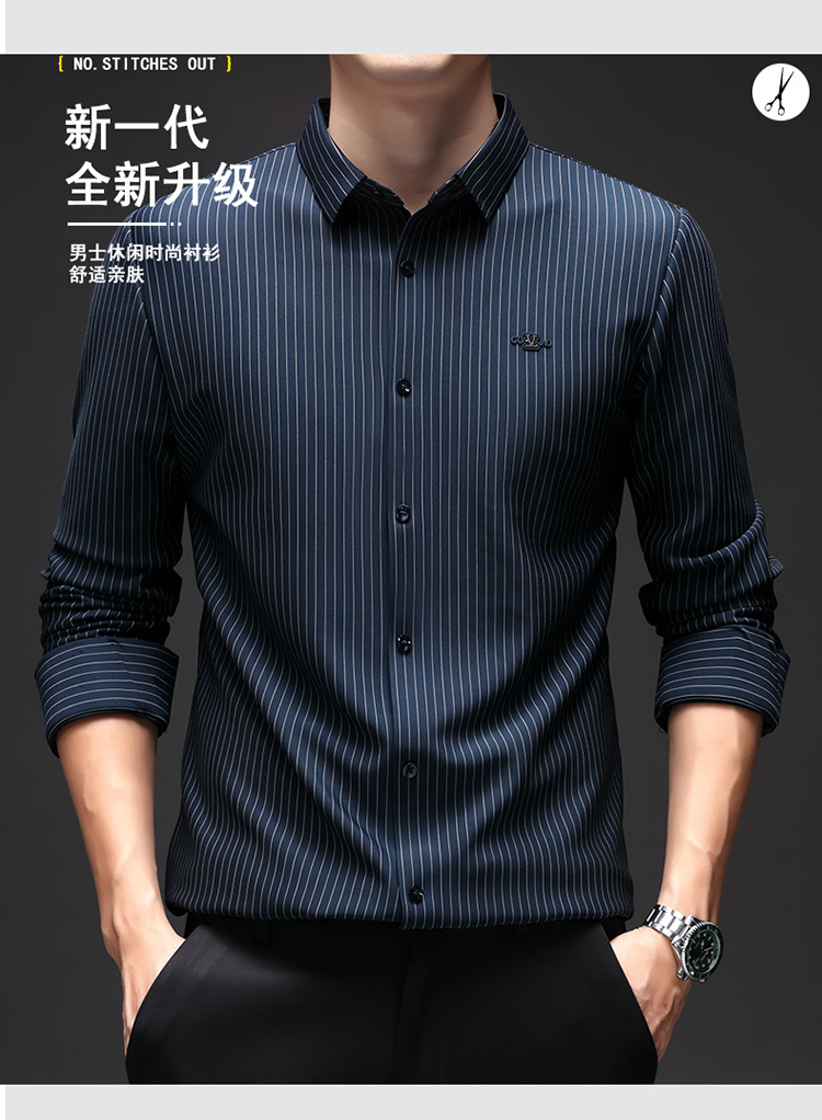 아이스 실크 스트레치 스트라이프 긴팔 셔츠 남자의 봄과 가을 비 다림질 사업 캐주얼 올매치 베이스 셔츠 주름 방지 셔츠