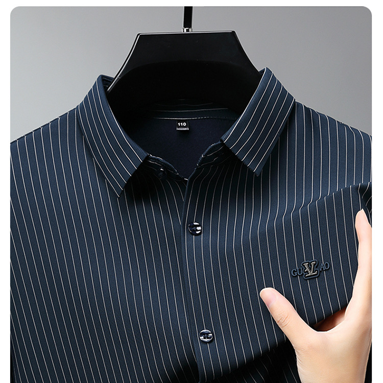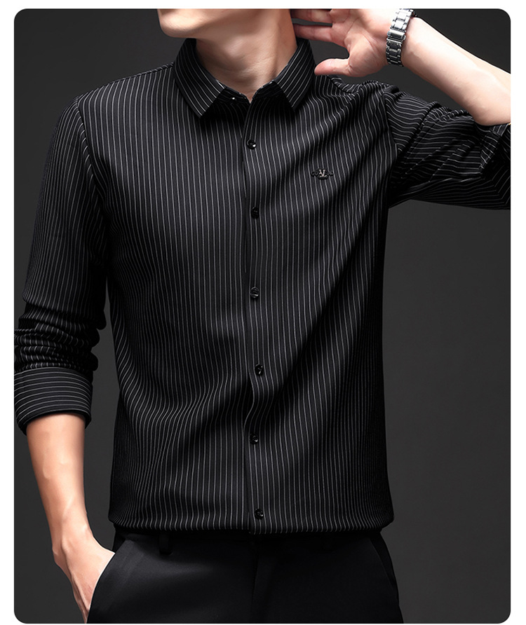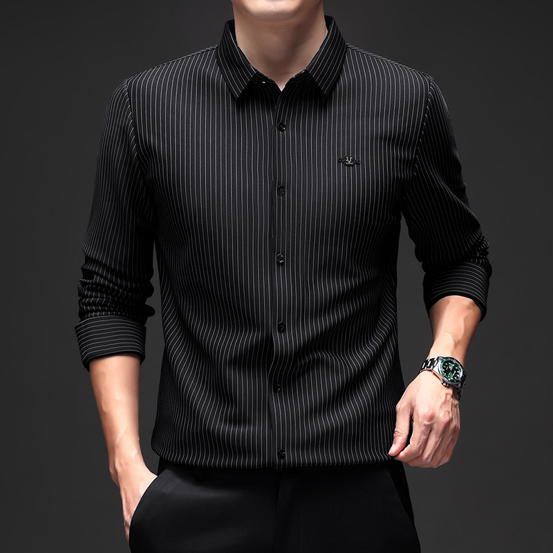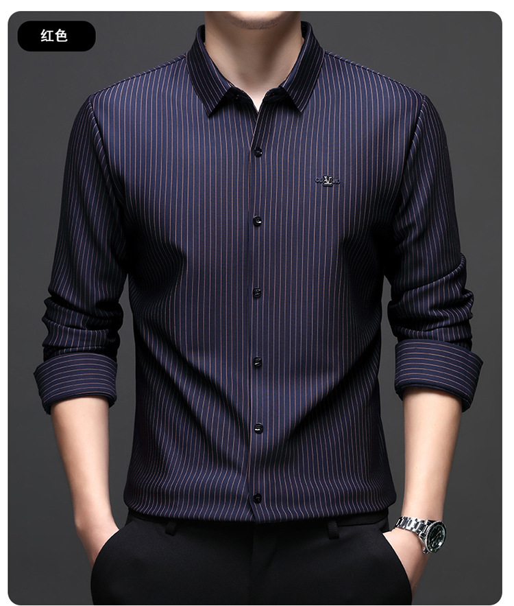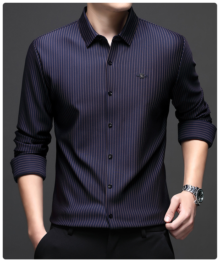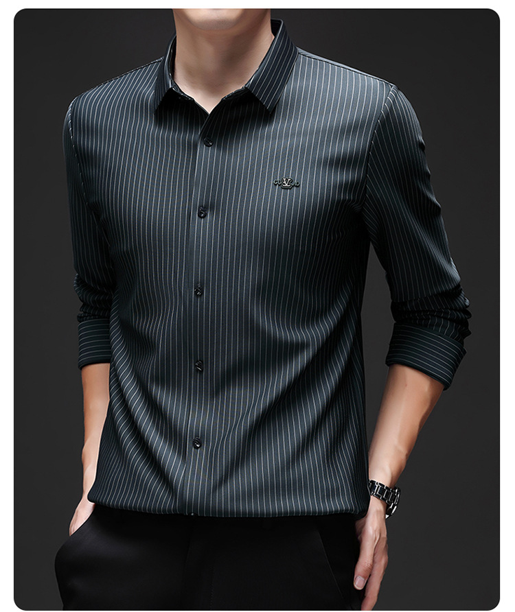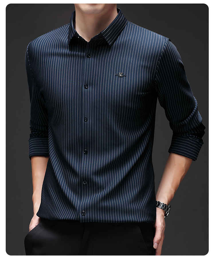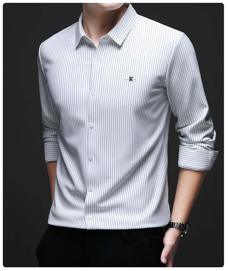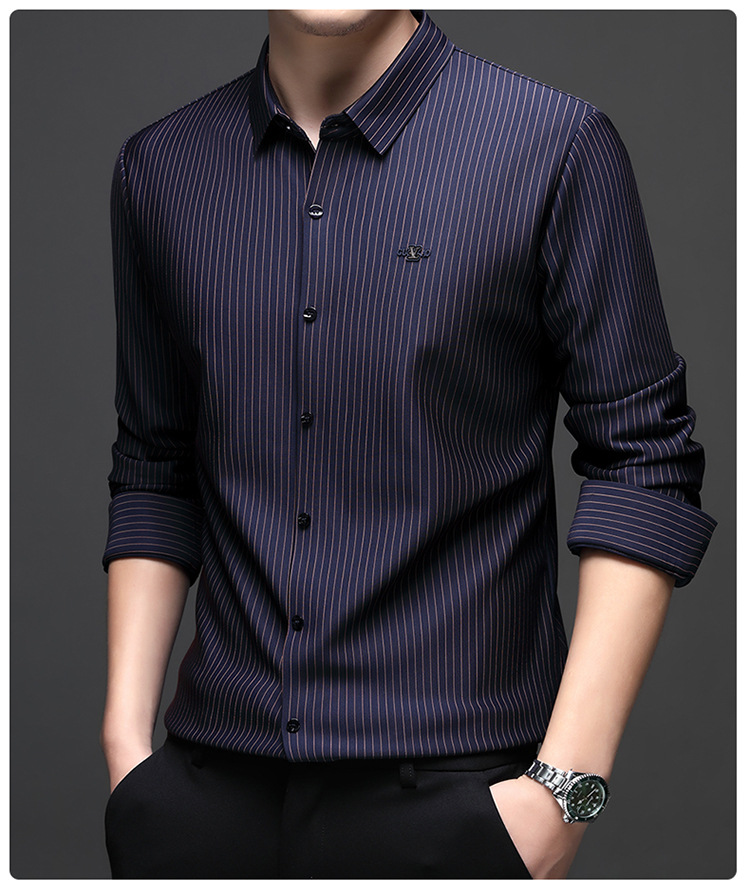 아이스 실크 스트레치 스트라이프 긴팔 셔츠 남자의 봄과 가을 비 다림질 사업 캐주얼 올매치 베이스 셔츠 주름 방지 셔츠