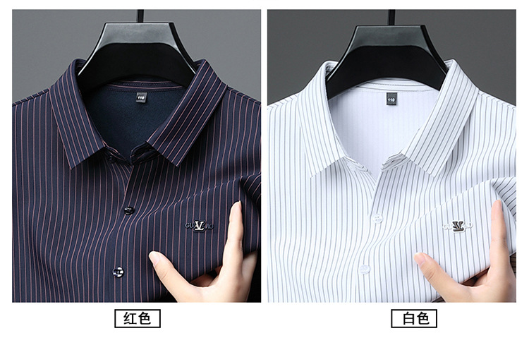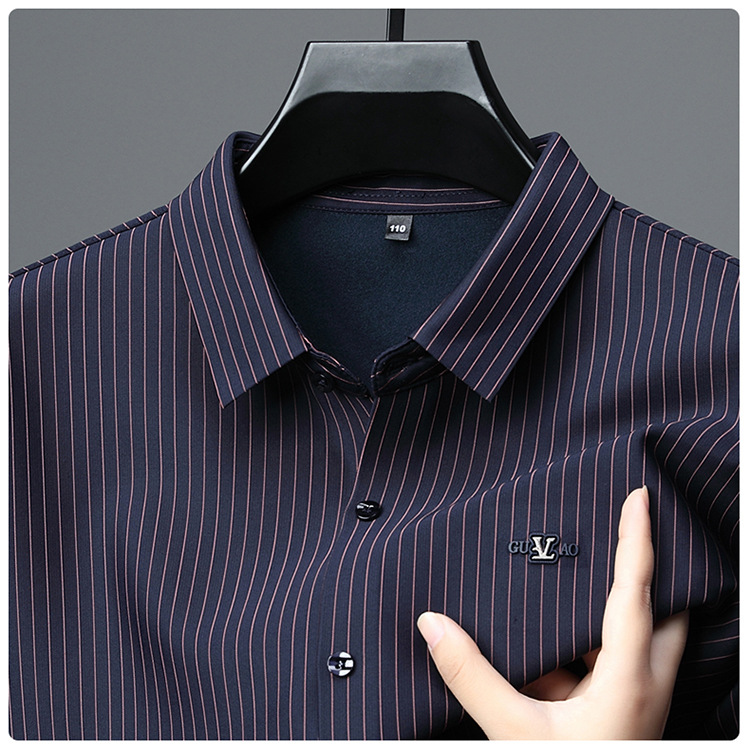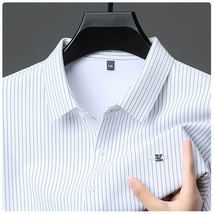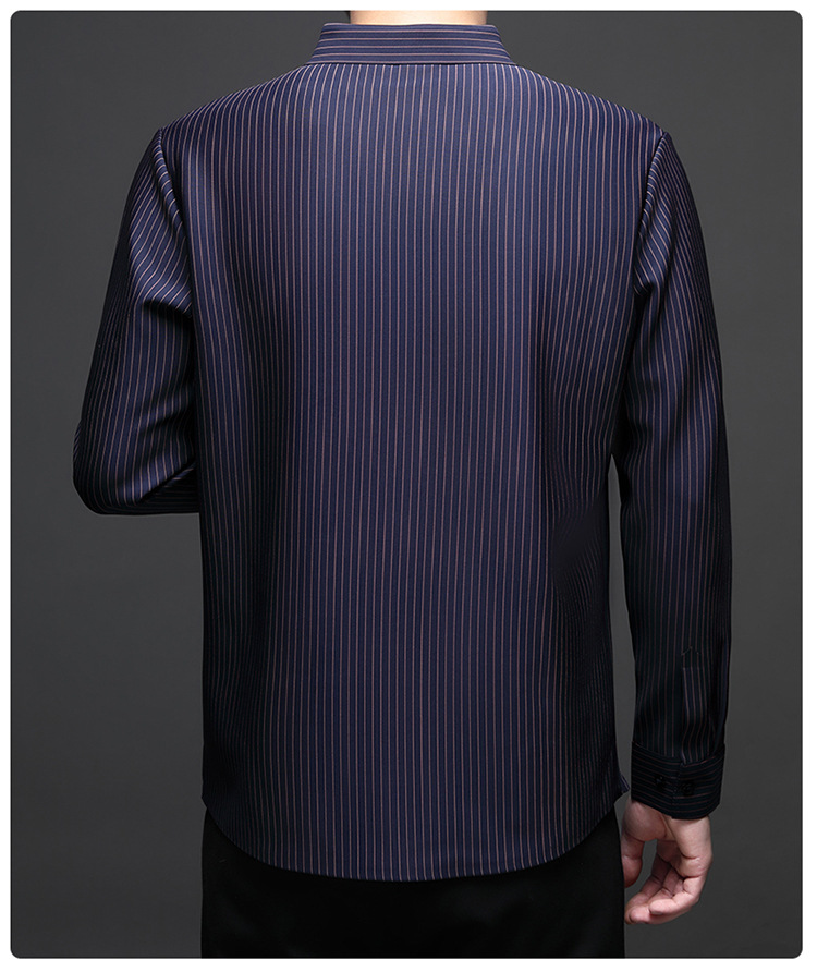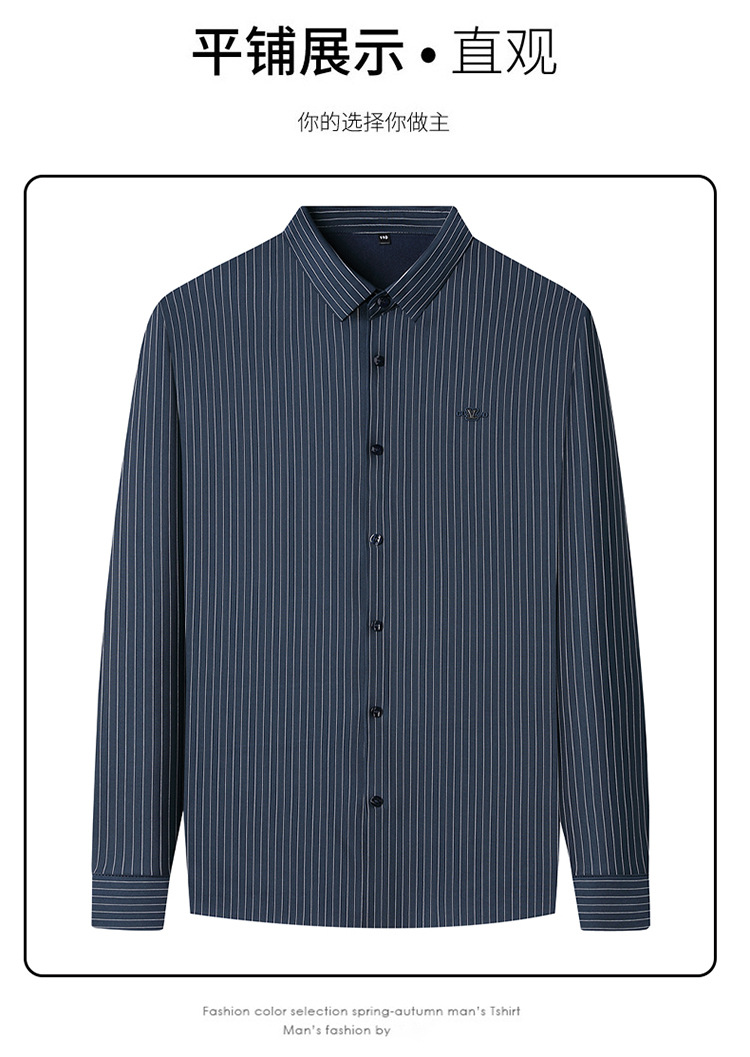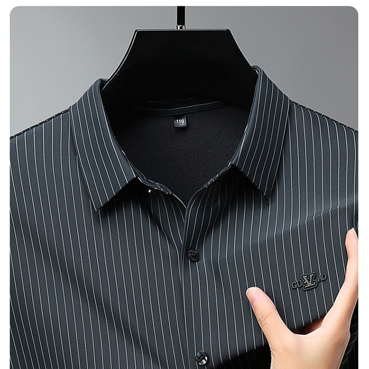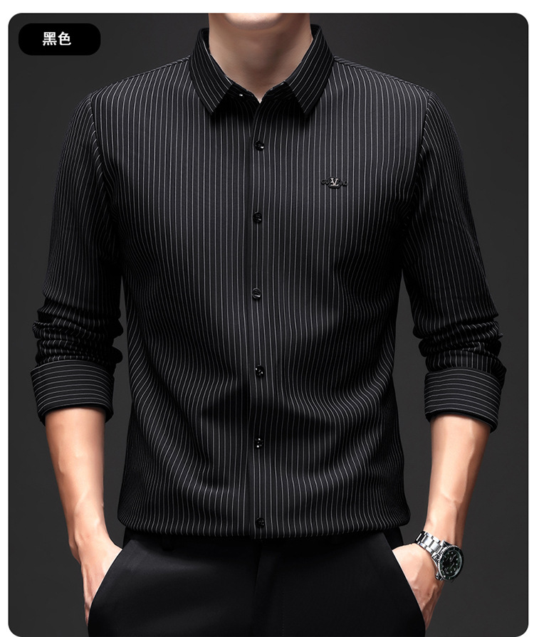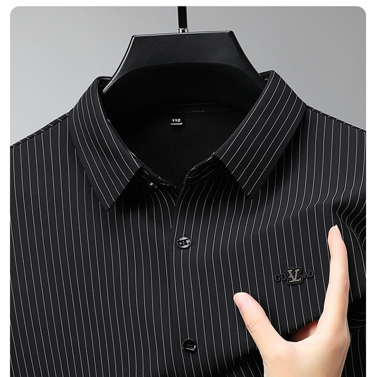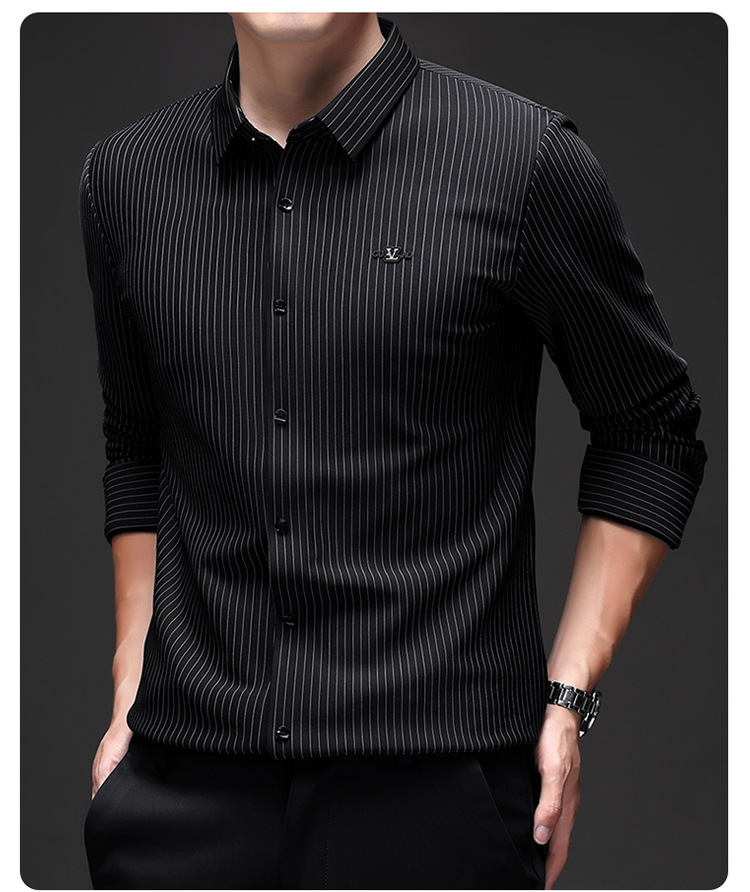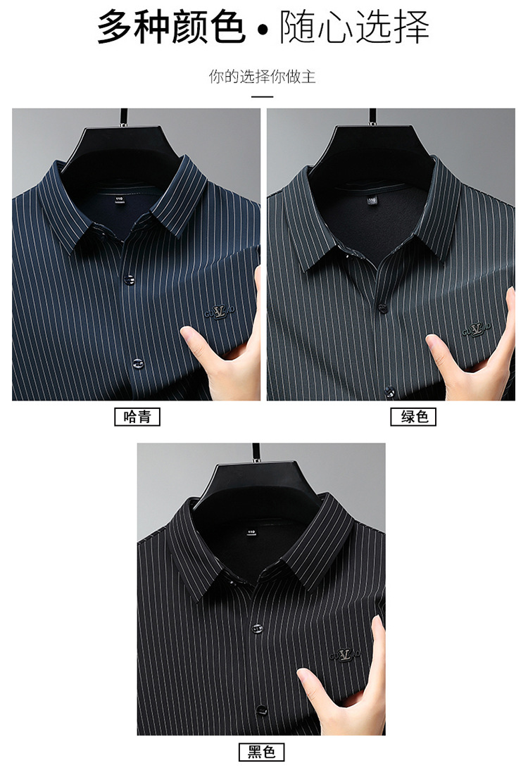 아이스 실크 스트레치 스트라이프 긴팔 셔츠 남자의 봄과 가을 비 다림질 사업 캐주얼 올매치 베이스 셔츠 주름 방지 셔츠