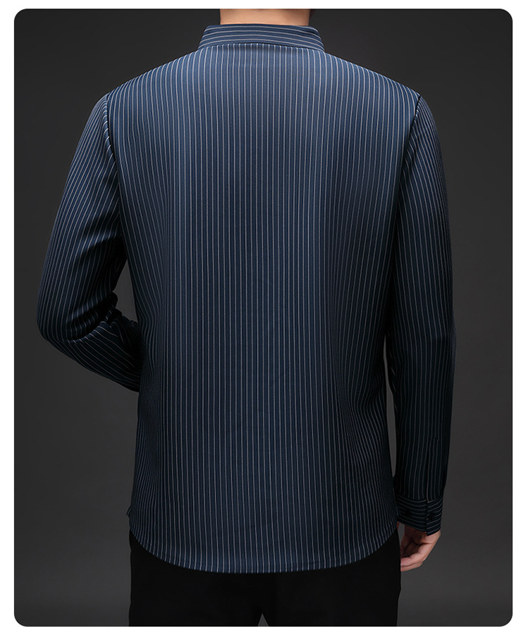 아이스 실크 스트레치 스트라이프 긴팔 셔츠 남자의 봄과 가을 비 다림질 사업 캐주얼 올매치 베이스 셔츠 주름 방지 셔츠스토어 가기