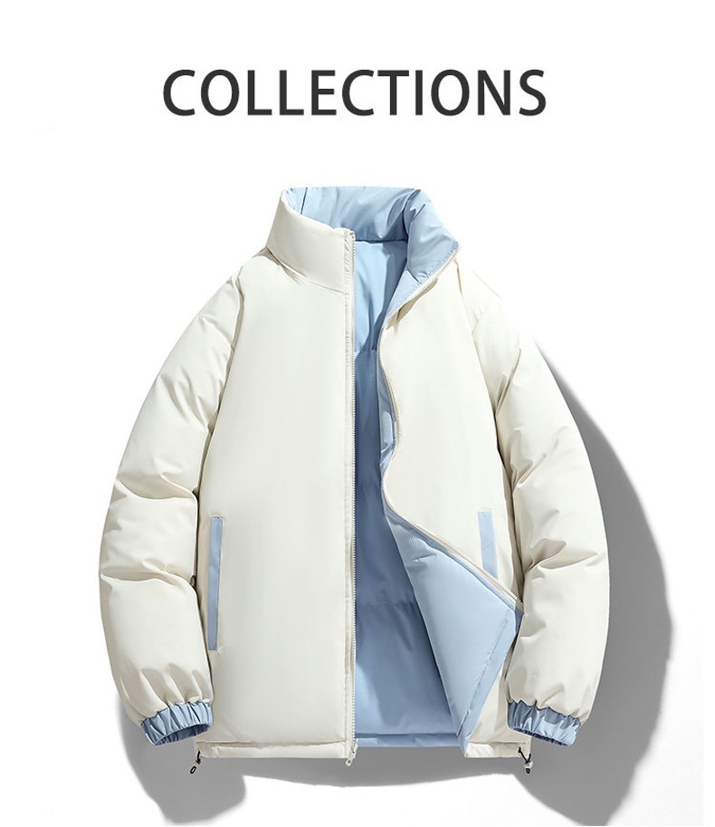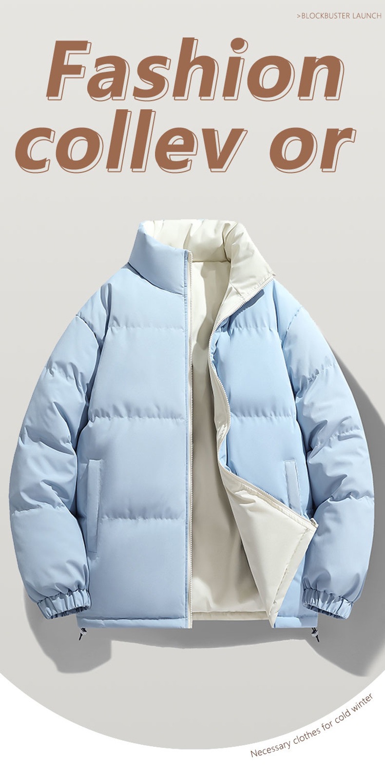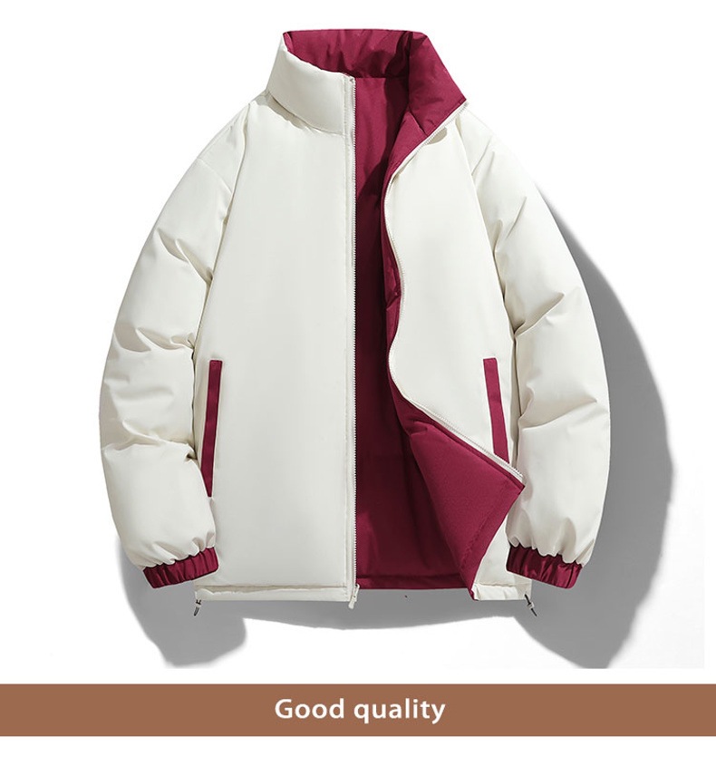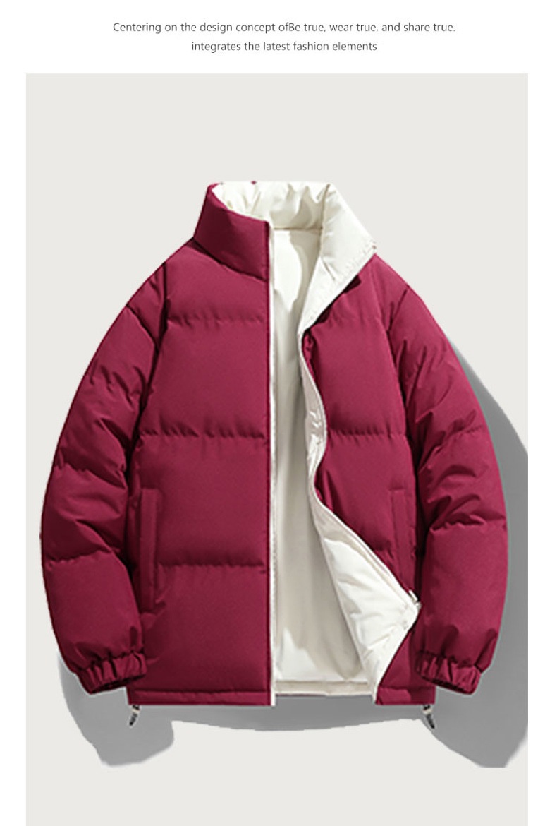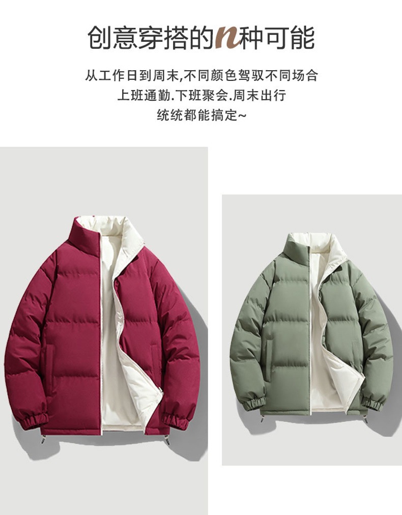 크로스 보더 다운 코튼 패딩 재킷 남자의 겨울 솔리드 컬러 양면 착용 수직 칼라 코튼 패딩 코트 플러스 사이즈 커플 빵 세트 용 두꺼운 코튼 패딩 재킷스토어 가기