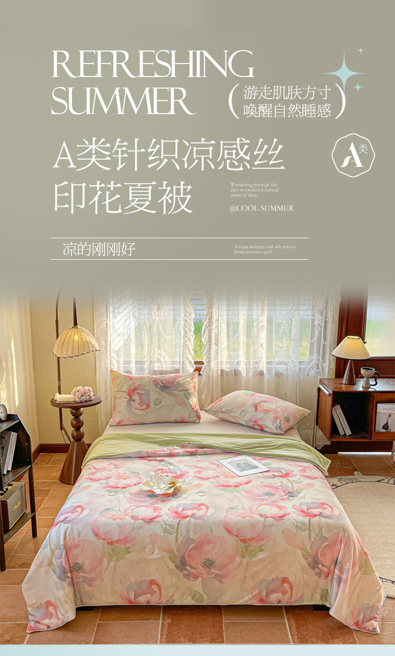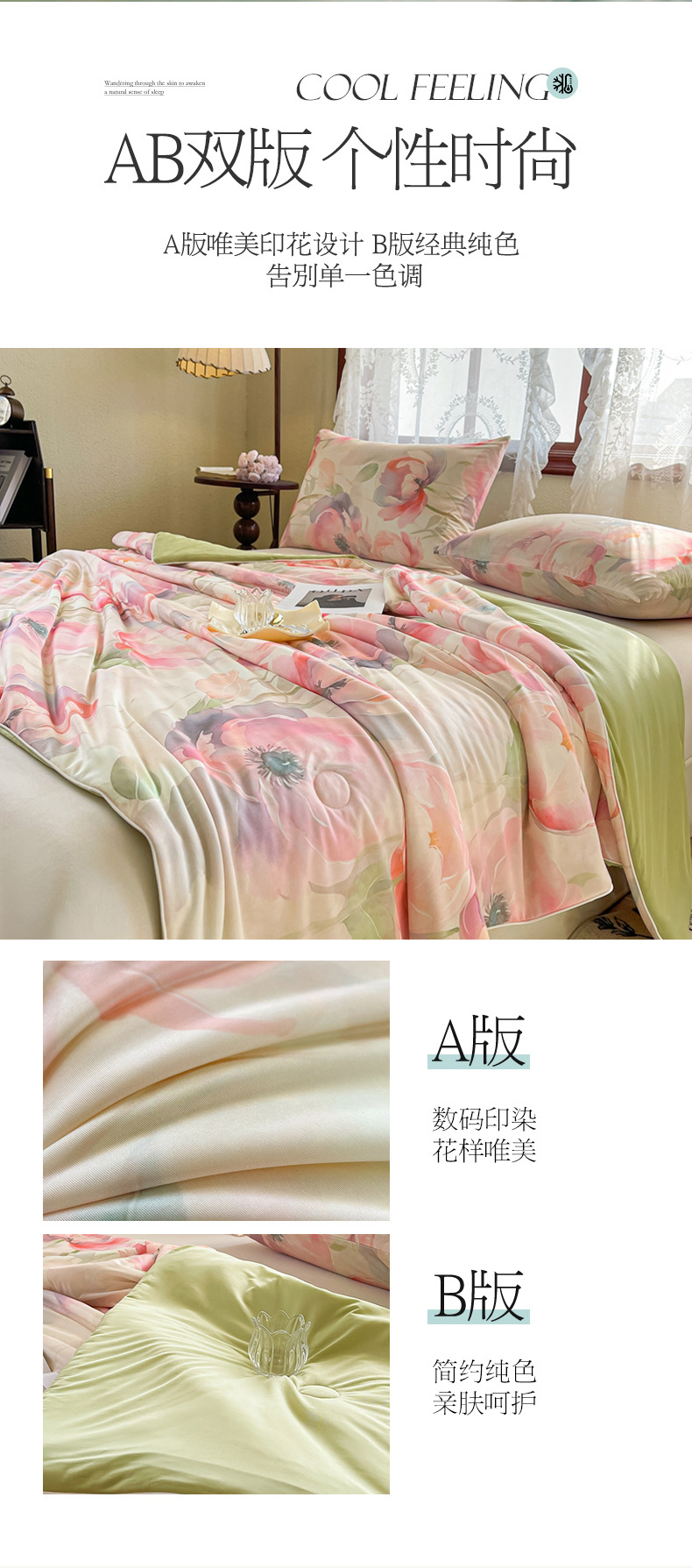 A급 아이스크림 여름 냉각 이불 프린트 아이스 실크 에어컨 이불 세탁기 사용 가능 여름용 얇은 냉각 이불