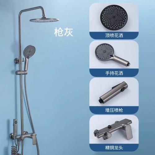 디지털 디스플레이 샤워 세트 건 그레이 가정용 벽걸이 형 블랙 샤워 욕실 슈퍼 차저 풀 목욕 수도꼭지 구리