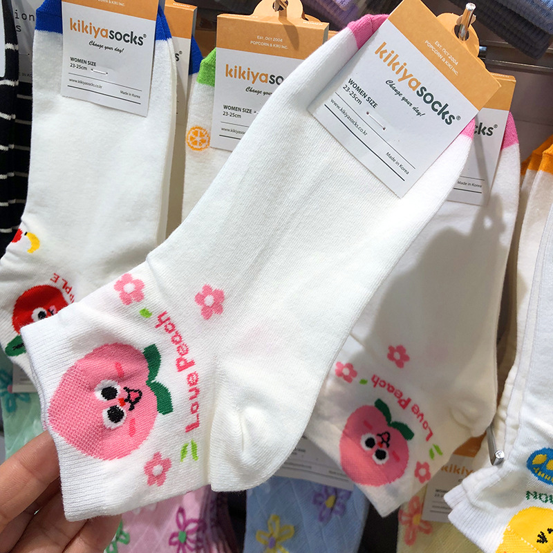 [재고] 키키야 봄과 여름 새로운 여성 양말 한국 수입 귀여운 과일 표현 가방 짧은 튜브 면 양말 낮은 허리