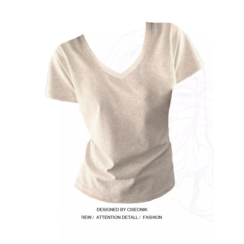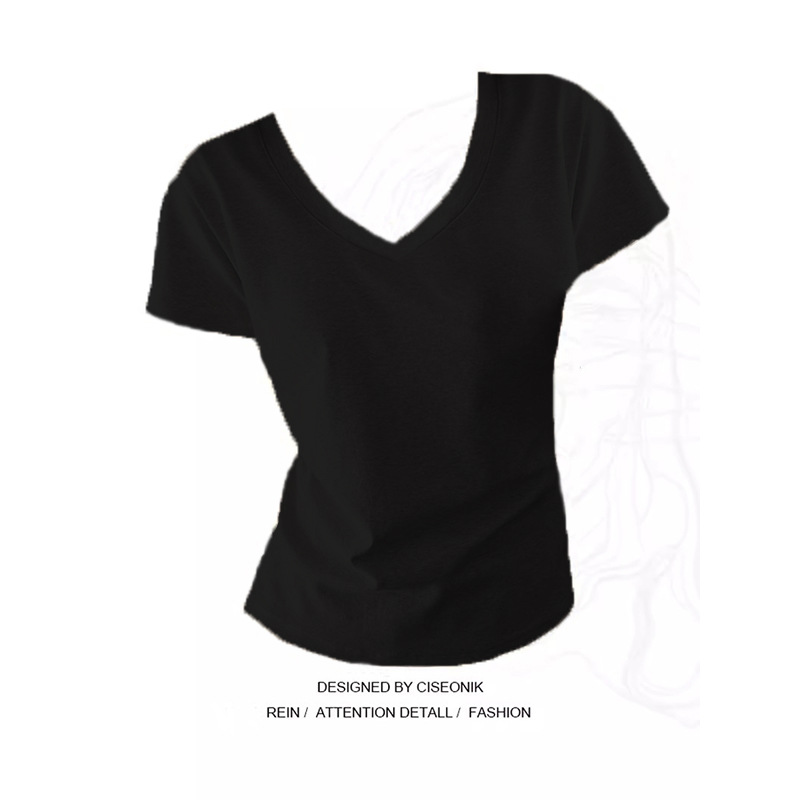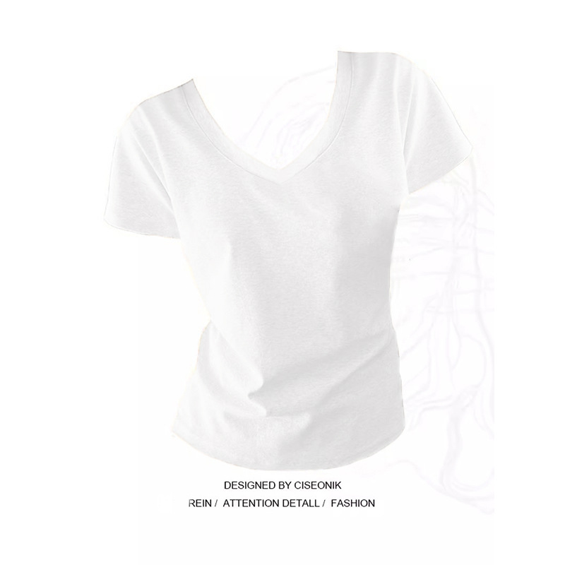 여름 U 칼라 숄더코튼 조커 캐주얼 기질 작은 반팔 티셔츠 여성용 탑스토어 가기